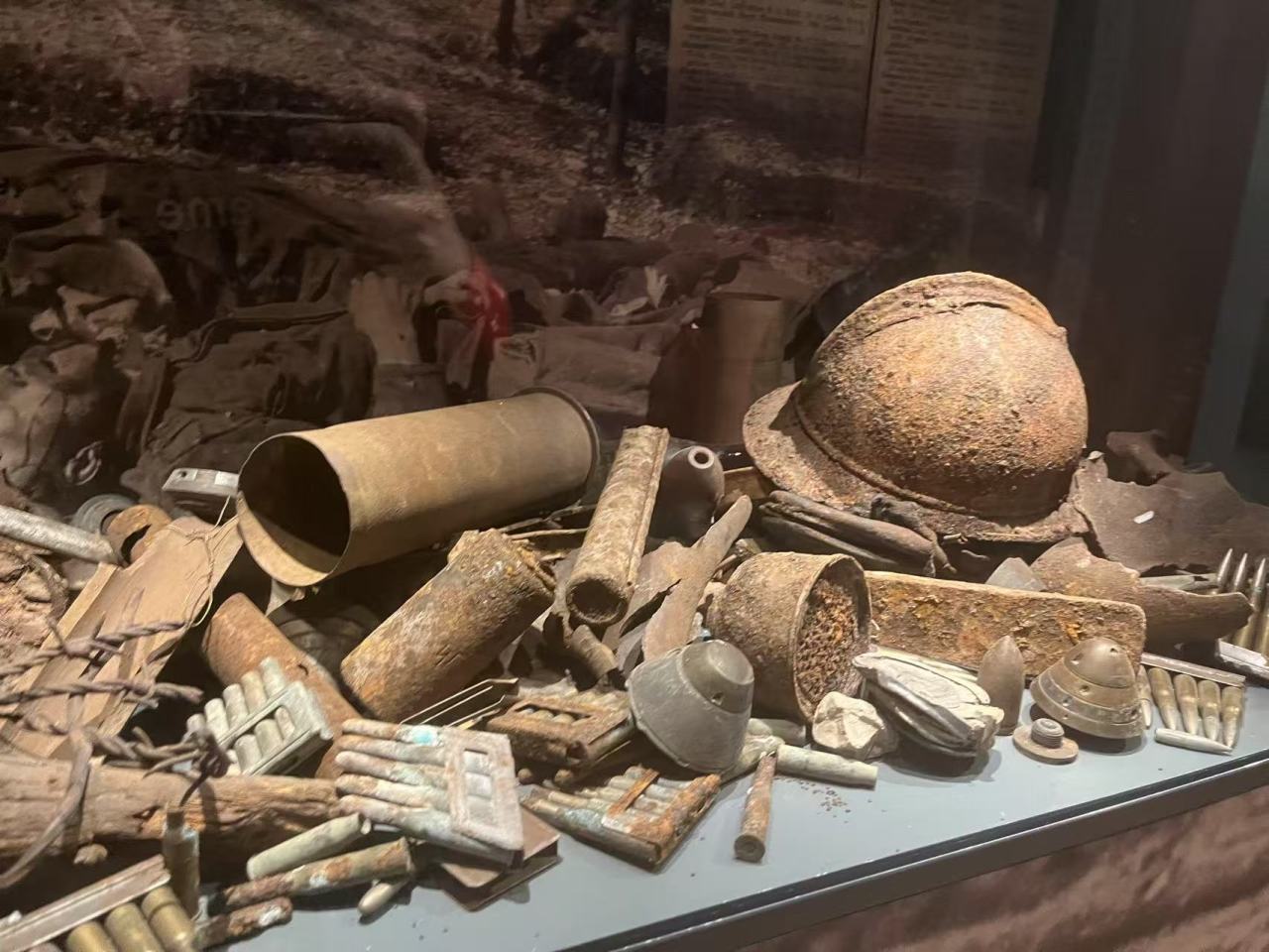 没走几步路,我又怔住了。但见玻璃橱里毫无规律地摆放的,都是锈迹斑斑的头盔、弹夹、炮管、水杯等士兵的单兵装备和个人物品。