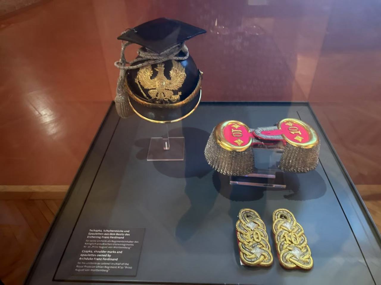 紧接着,我又看到了头盔与肩章和绪饰。下意识地瞄了一眼左下角说明牌上写的肩章的主人,我的心猛地一沉:斐迪南。