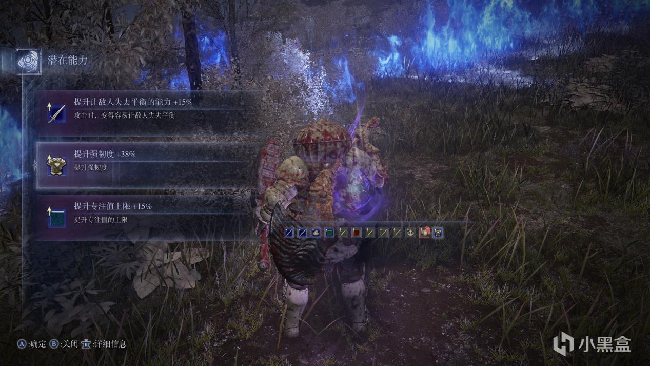 再比如正如上文所言,本作拥有着不少“缓步移动能释放额外法术”的词条,但在如此快的游戏节奏、如此激烈的战斗之中,除了喝血,很少会有允许玩家轻推WASD缓步移动的机会,这也让这一词条在实战中的表现并不出色——除非诸如“举盾防御时缓步移动可以加快恢复耐力值”这样的词条出现,这就足以让无赖、鹰哥以及众多可以举盾的角色能够实现在Boss的眼皮子底下输出尽了绿条之后,除了抱头鼠窜还多了一条能够一边防御一边恢复耐力还能趁机额外输出的路可以走。