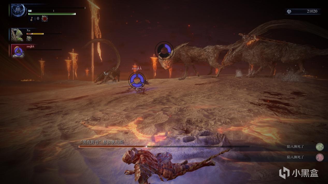 精彩!可惜的是,要想领略到这份Boss战的精彩,你需要整整40分钟来为其做铺垫。对于像我一样拥有着固定组排车队的玩家来说还好,Boss战中即便是第三次倒地也可以凭借着蜗牛妹或者鹰哥的大招实现秒拉复活,但对于单人游玩的玩家来说这就有些崩溃了,毕竟辛辛苦苦发育了一整把,如果连Boss的出招都没能看完就顺理成章地回到了赐福大厅,那要想攻略这个Boss不知道需要花费多少学习成本。在游戏发售伊始,这也正是不少玩家所为之诟病的一点,好在现在单人玩家能够拥有更多的复活机会,体验也随之大大上升。