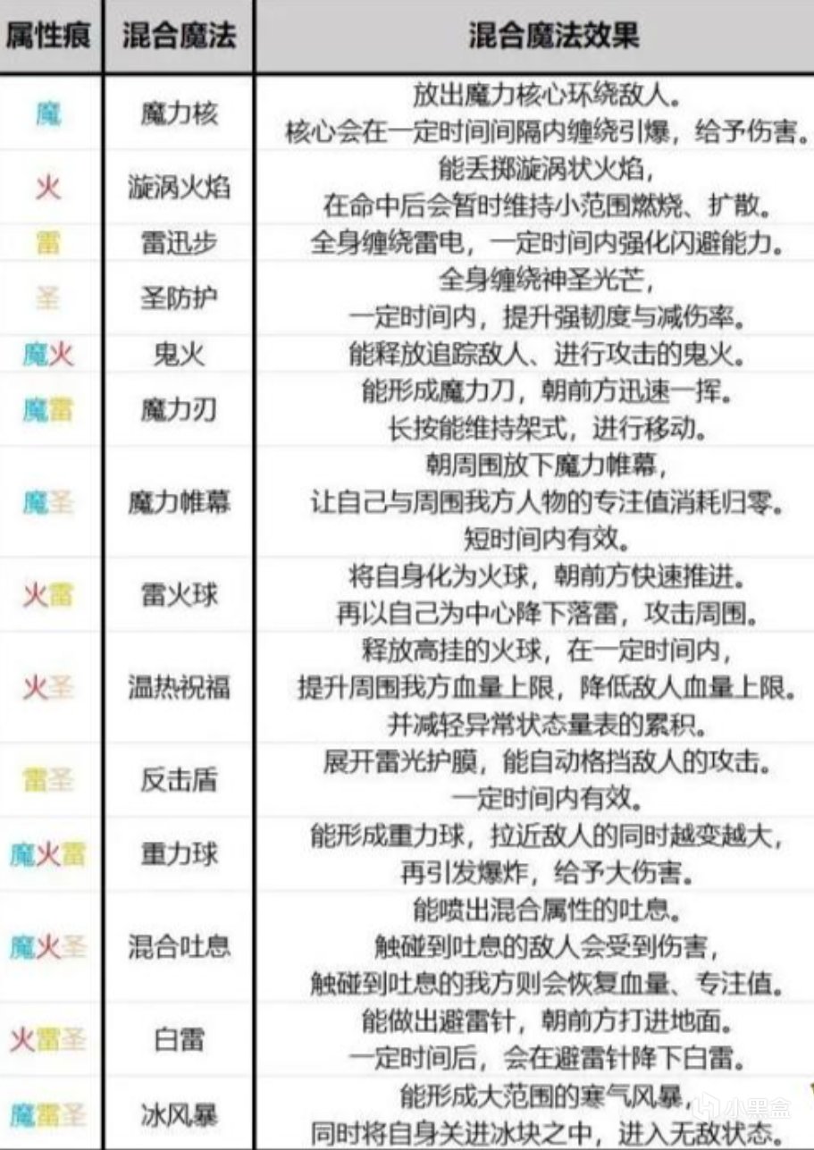 在游戏刚发售时最被人低估也是派生技最多的技能,当属法师的元素合成技,别的不说直接看图,单单能够借助回收敌人身上的元素属性所派生出不同的技能组合就足以让每一个法师玩家学一段时间了……