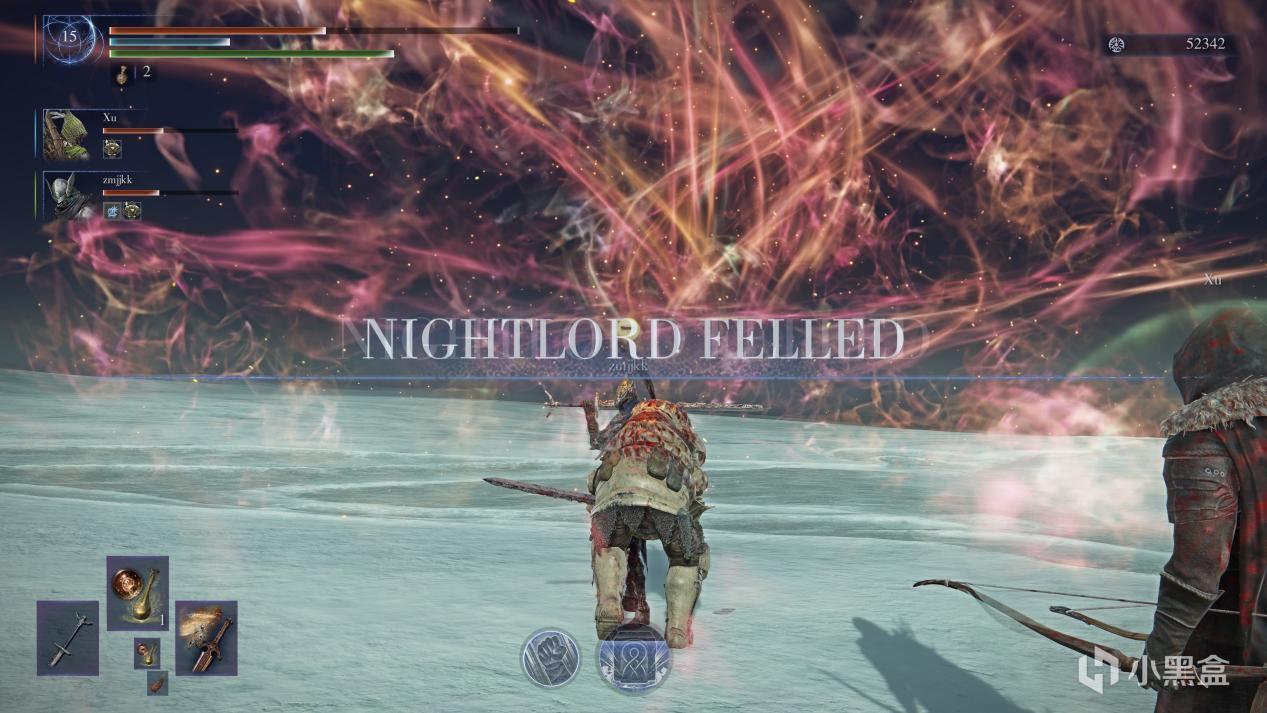 如果各位读到这里,私以为对于《艾尔登法环:黑夜君临》这款游戏想必也已经有了相当程度的了解。对于正在观摩、想要入手的新玩家,请各位务必在通关了艾尔登法环之后再前来游玩本作,毕竟本作作为老头环的衍生品,绝大多数怪物、Boss和武器都是以老头环为蓝本设定的,没有老头环本体的经验将会拥有相当高的学习成本。而对于有能够和你固定组排车队的玩家来说,别犹豫,本作的魂系共斗绝对能够让你获得超出想象的快乐。