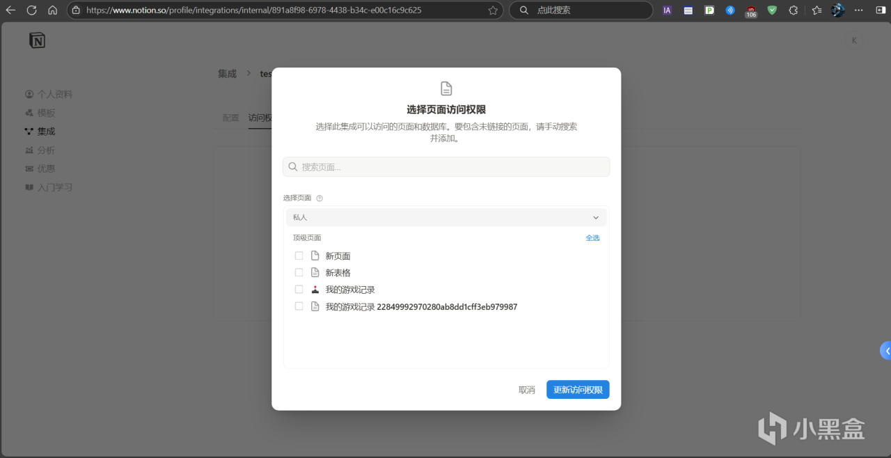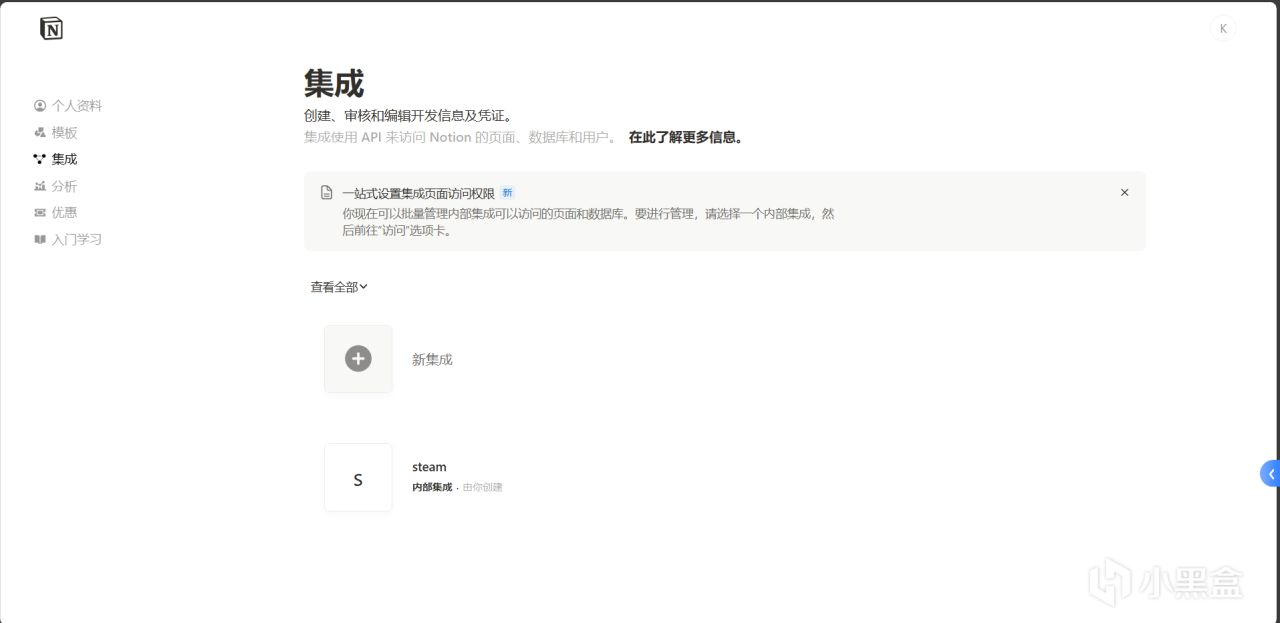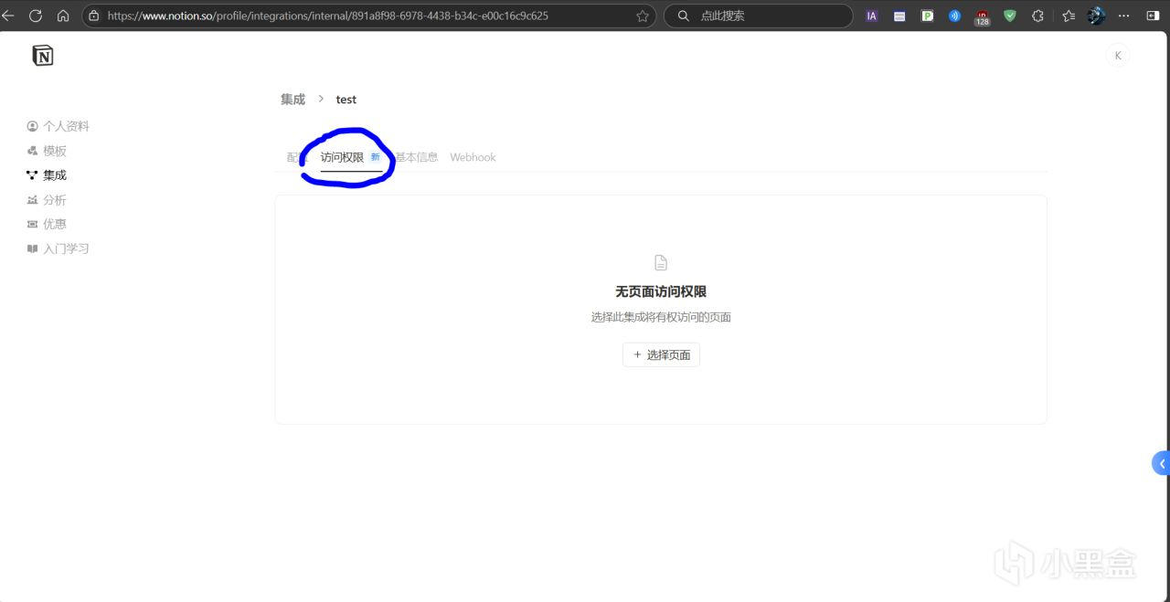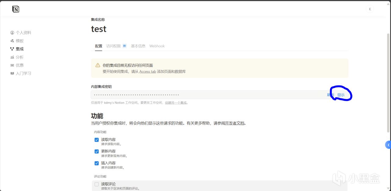 3.创建好后我们获取集成的API TOKEN顺便调好访问权限