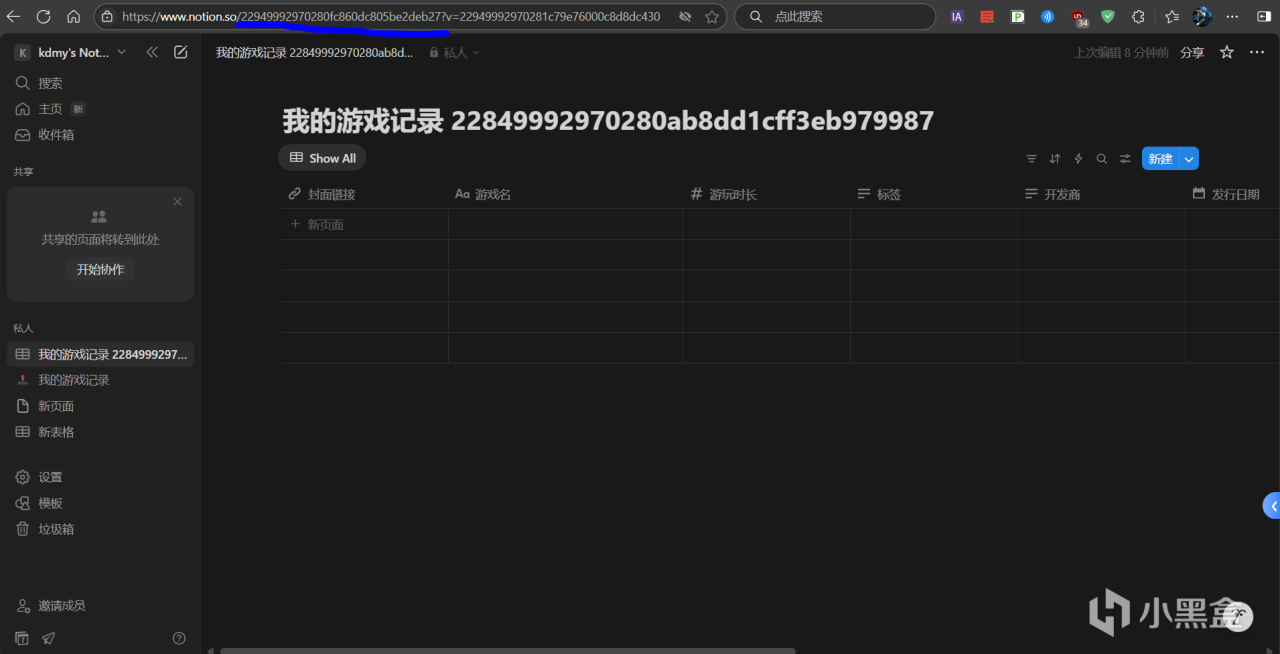 登录网页版Notion进入我们导入的数据库,链接上就是我们的数据库ID(到问号截止)