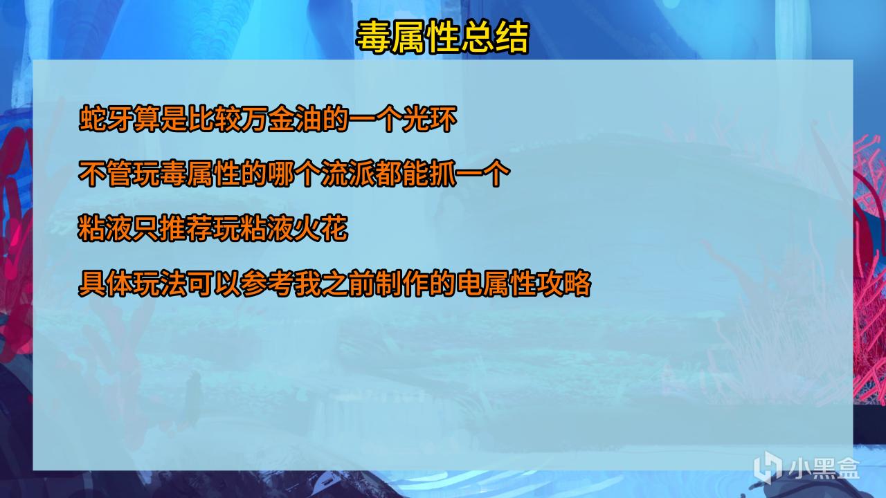 另外毒的基础属性毒液当前版本不吃实力,只有4点固伤,太搞笑了!希望制作组后续能增强一下。