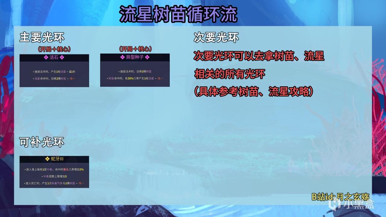 核心是活石+异型种子达成树苗流星双循环,次要光环可以去拿树苗、流星相关的所有光环。(具体参考树苗、流星攻略)