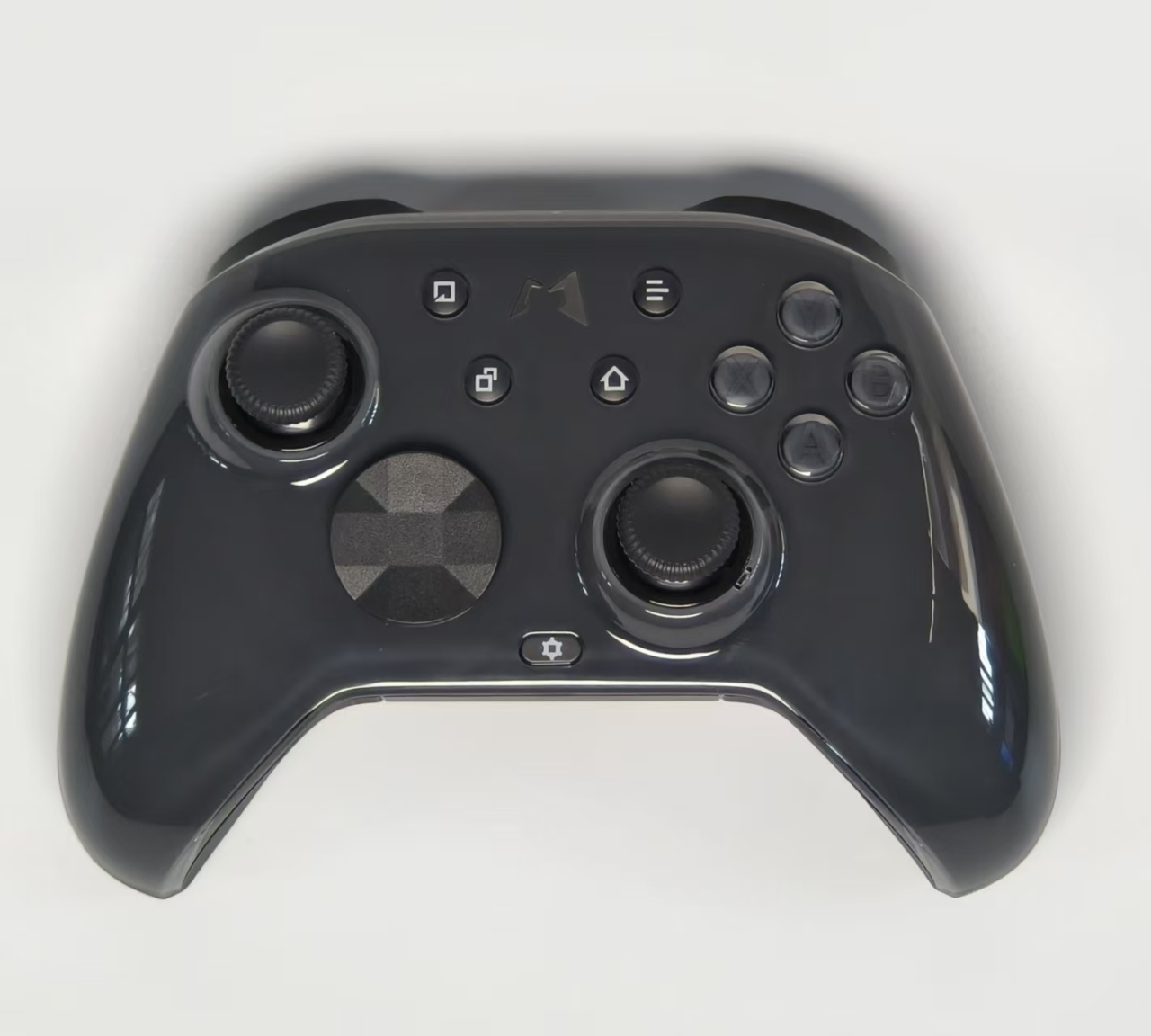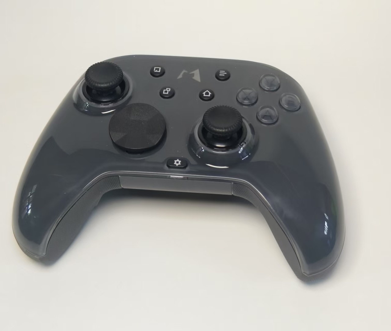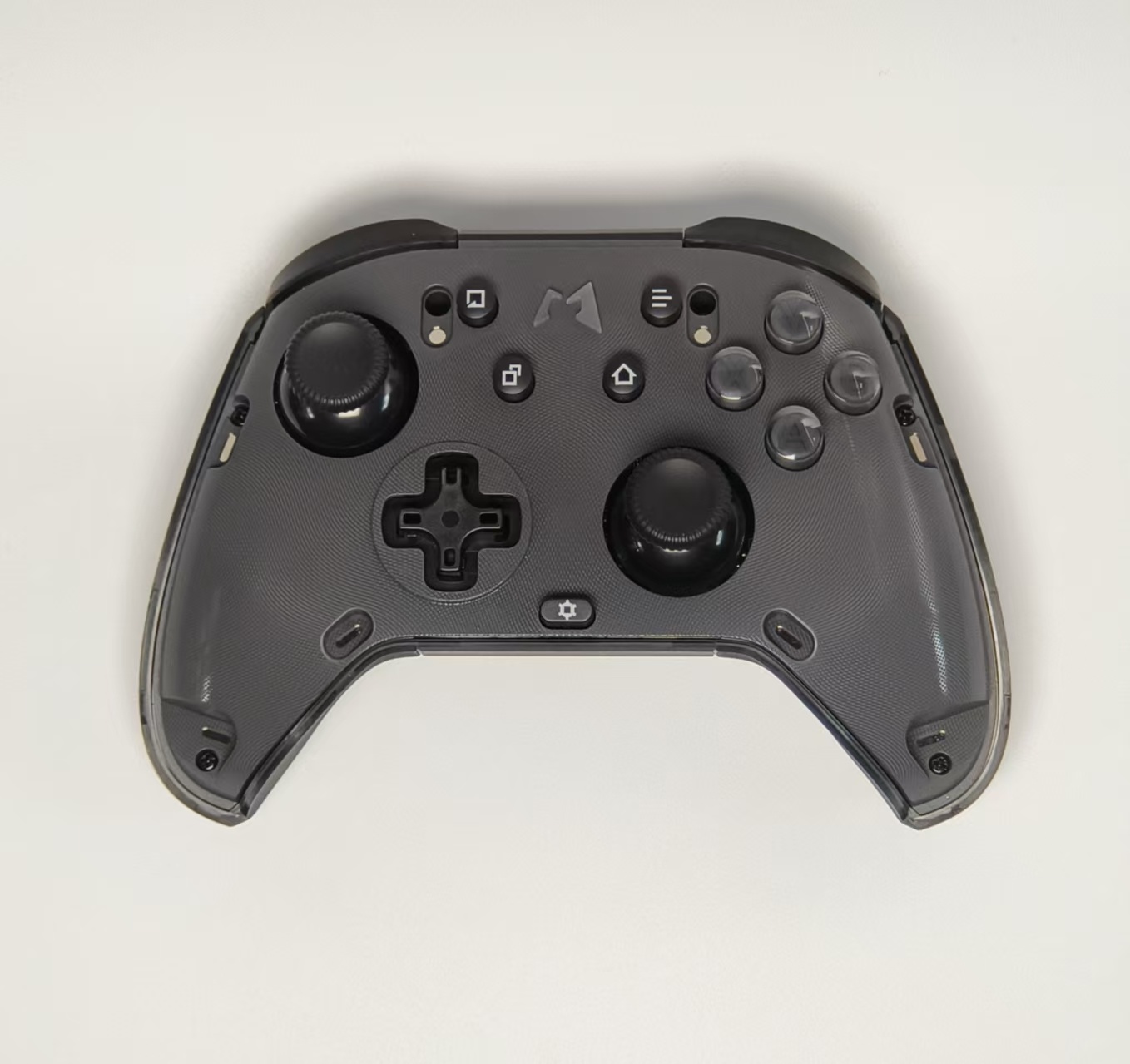先看外观,这款手柄一共有焰白、玄灰、燃墨三种配色,正面采用了滑面的磁吸面壳,最上方有魔派的“M”形LOGO,十字键有四向和八项两种可供选择。