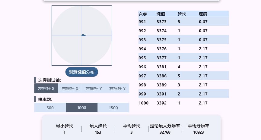 在实际测试中,这款手柄的回报率能非常稳定的保持在1kHz以上,分辨率测试最高能上万,画圆错误率测试更是低至了0%。至少我测试过这么多次手柄,0.1%我都见过,0%我还真是第一次,自称目前最强摇杆,果然名不虚传。