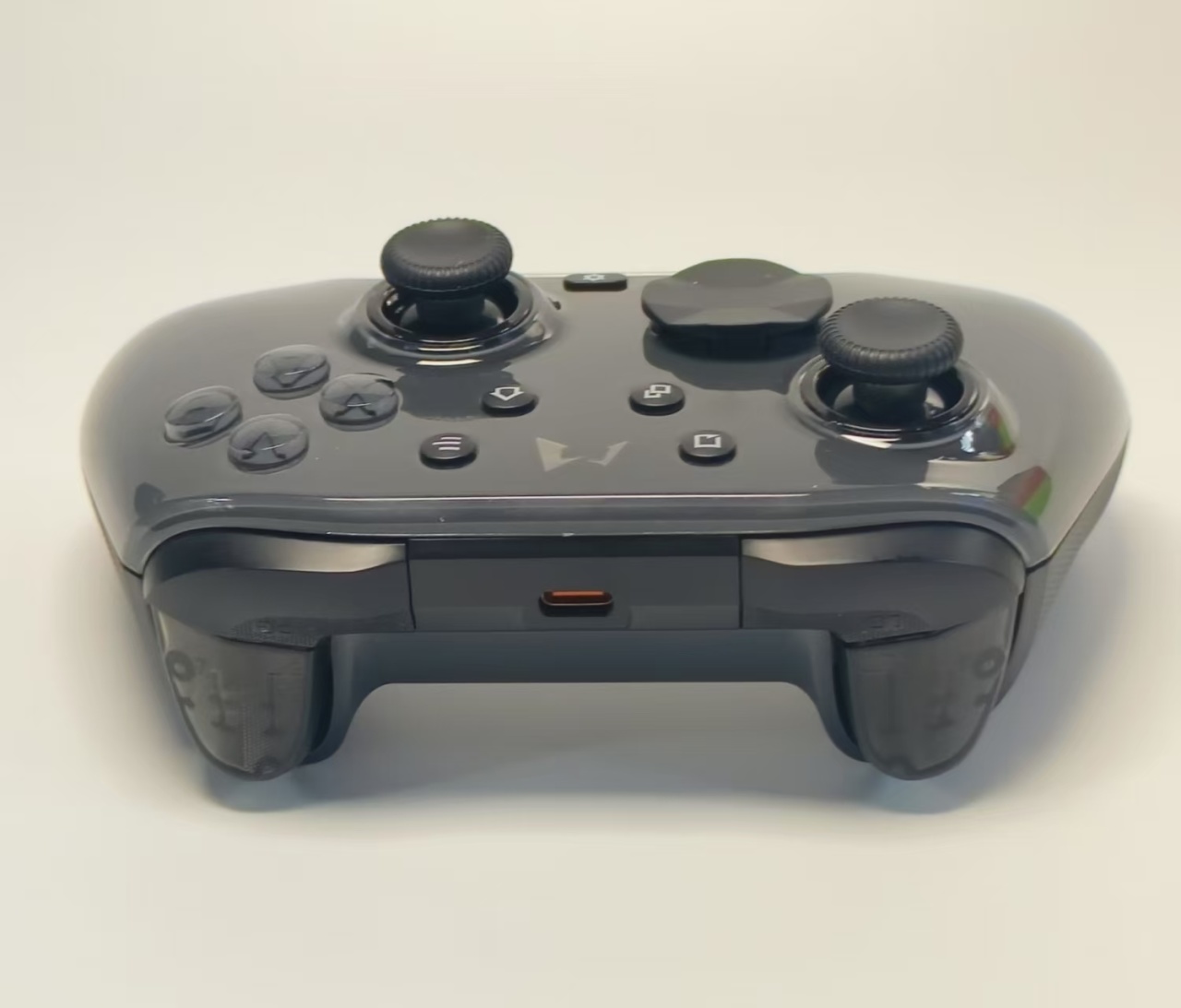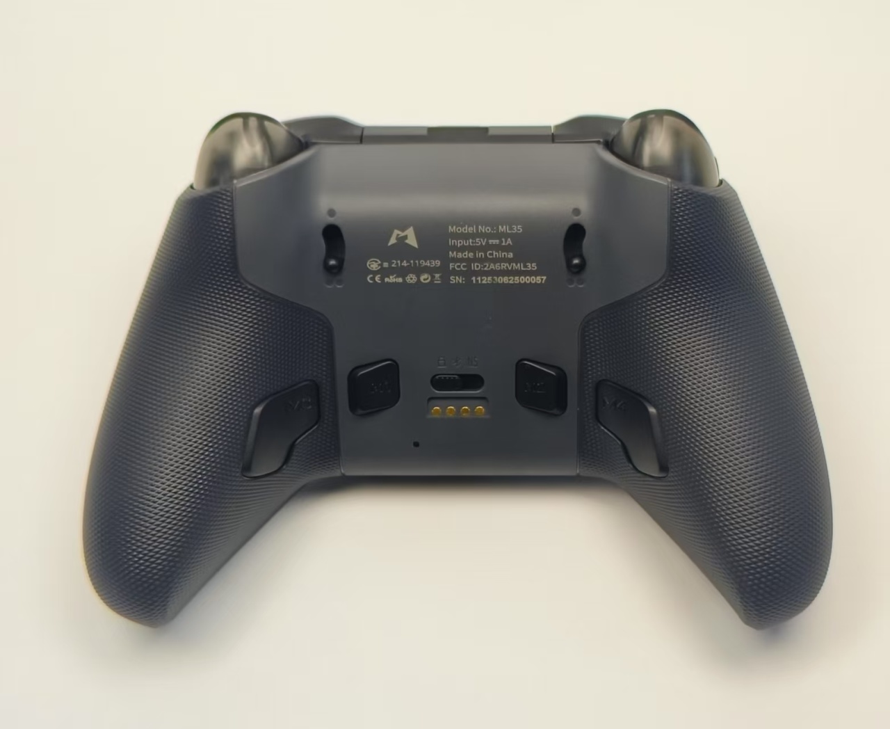 背面的握把处做了防滑纹处理,并且加装了4个一字型背键,以及磁吸充电碰口,在日后应该会推出充电底座以及不同风格的磁吸面壳。
