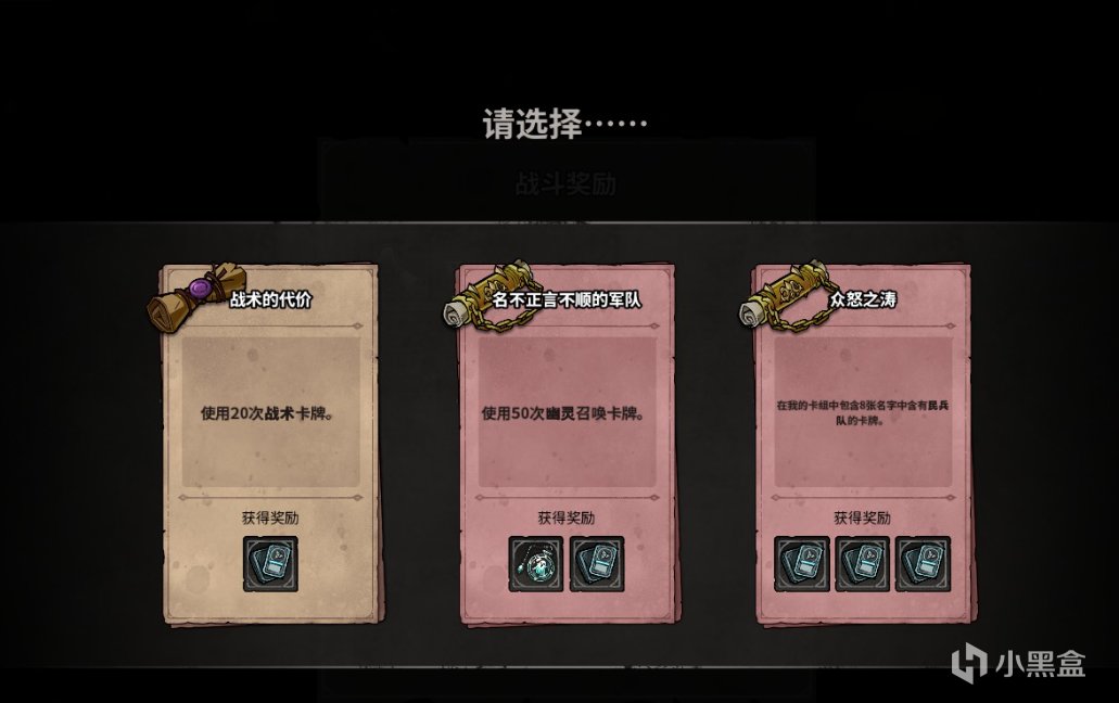 而且游戏还添加了个非常有趣的功能,那就是委托功能,其实我感觉也算是支线任务,达成一定的条件即可奖励卡牌,这个还挺有意思的,如果你不知道这回合玩什么牌组,不妨跟着任务走,例如我就搞了一个民兵牌组,玩到后面爽的一批~ 直接完美通关了!