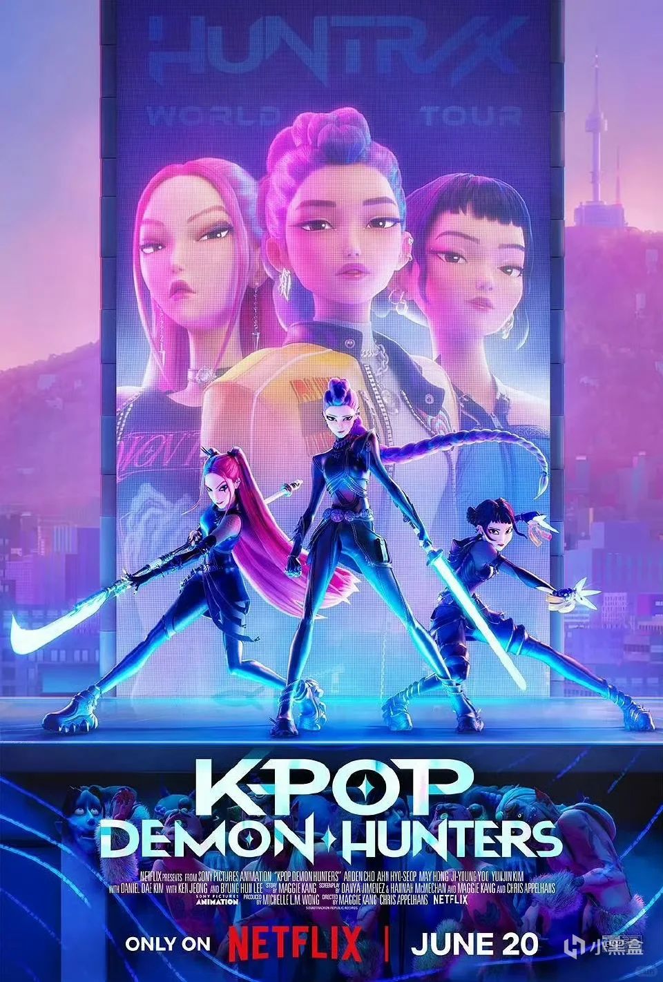 人前,她们是世界级顶流女团Huntrix的成员,是能在舞台上给予无数粉丝力量的偶像;而离开了镁光灯,她们就变身成挥舞光刃、斩除恶魔的猎魔人。
