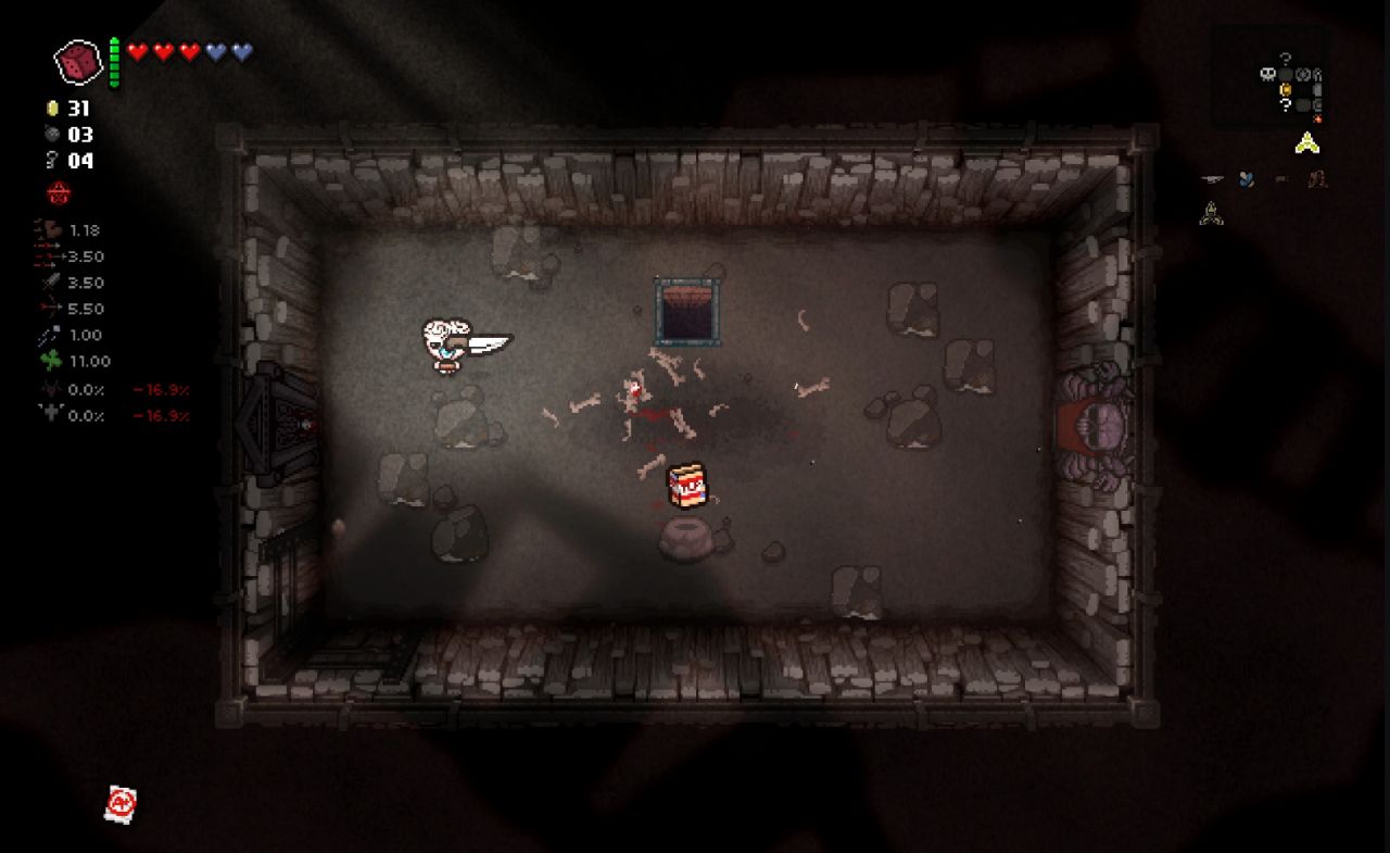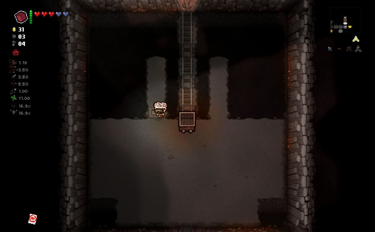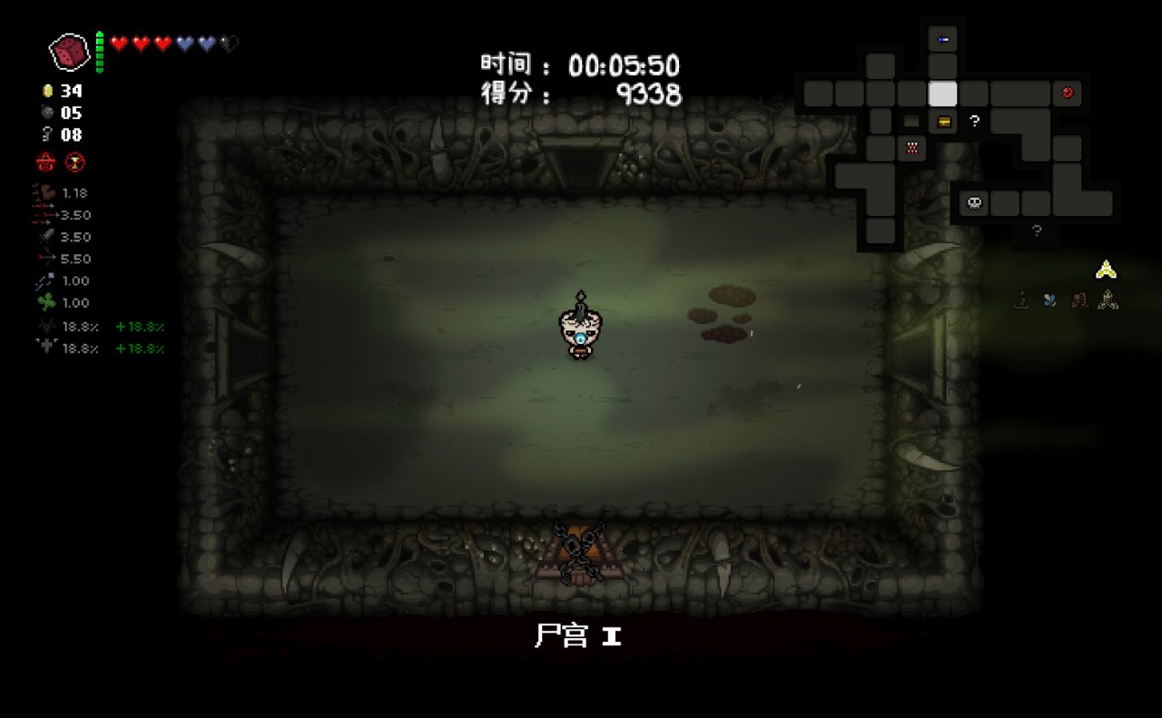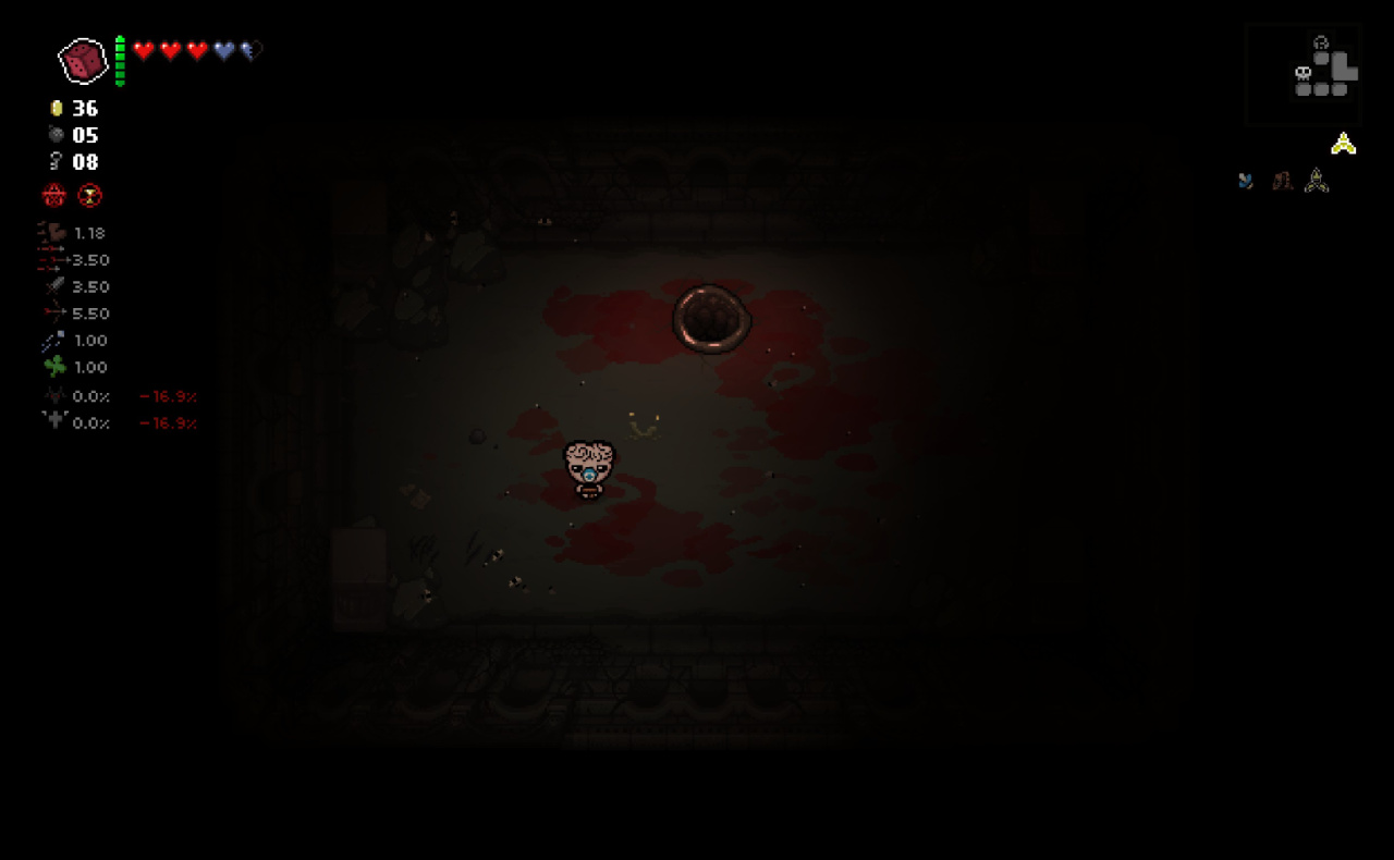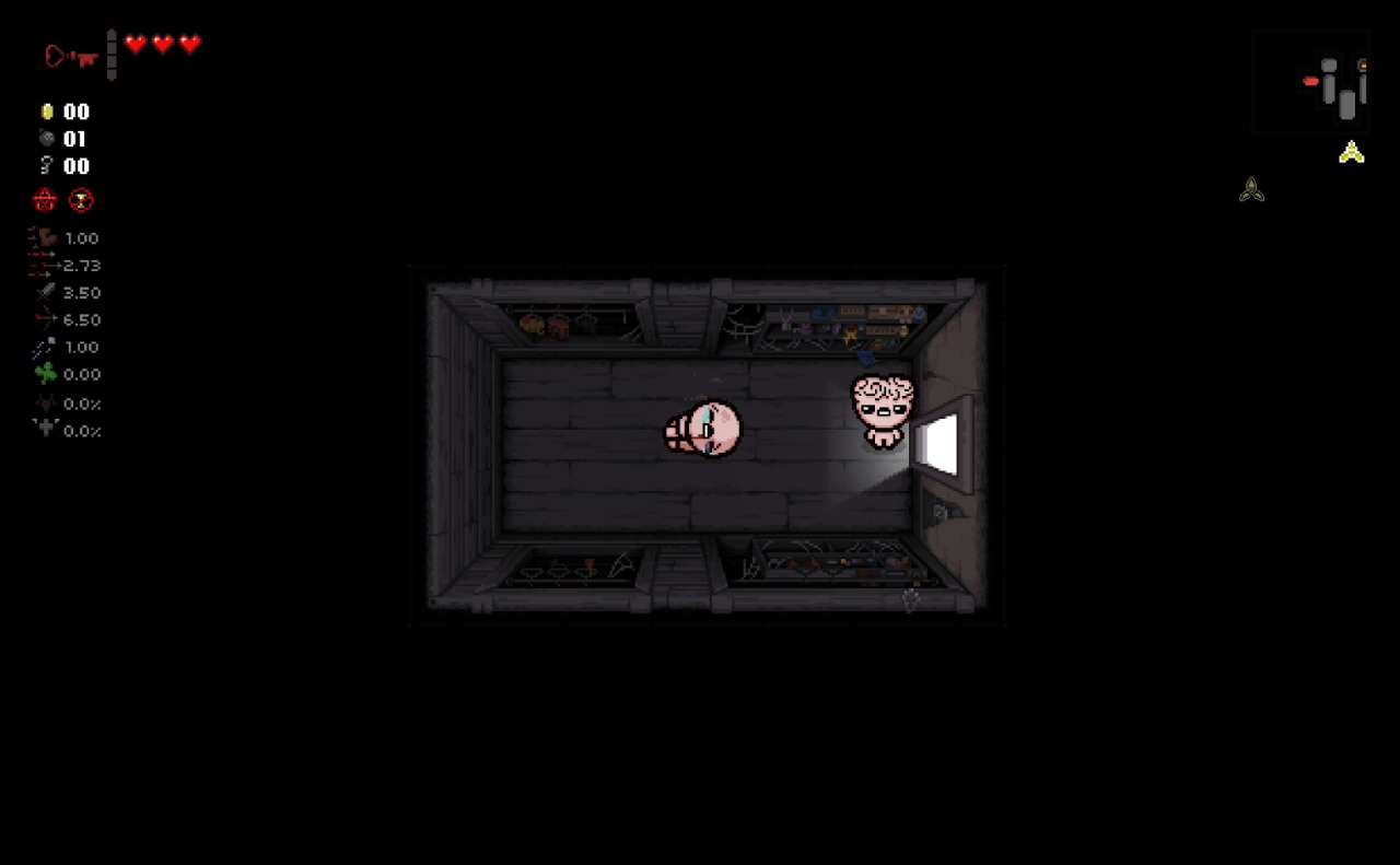 趣談:如果玩家在有傳送能力的情況下,在打敗紅色肉門後的強化媽心之後傳送出BOSS房,會發現地圖外一片死寂,所有東西都會消失(包括寶箱房和商店)