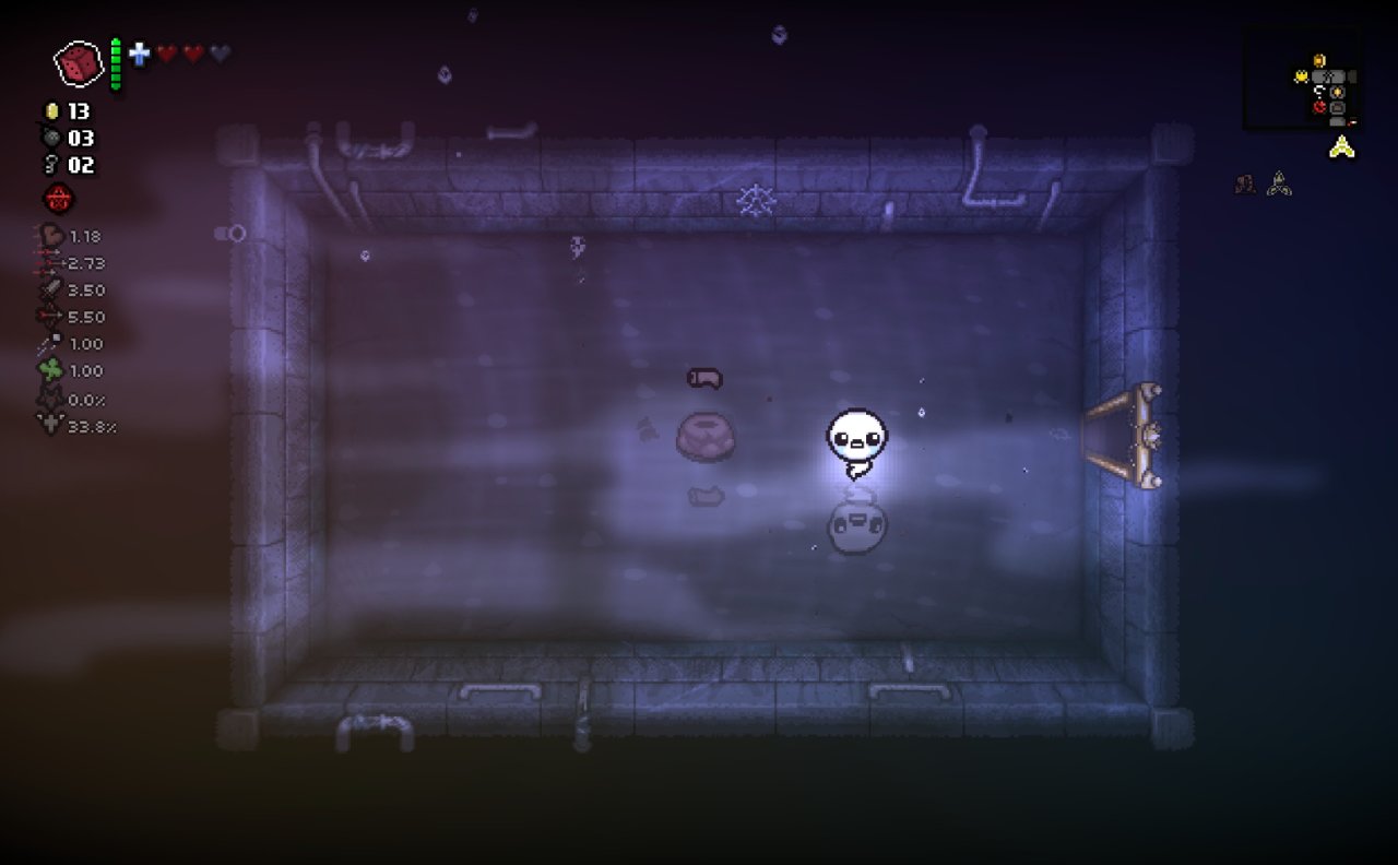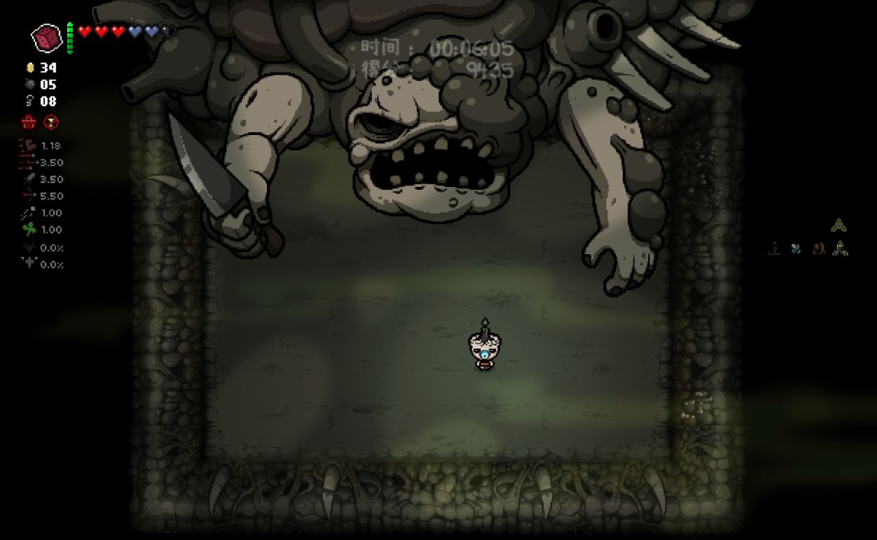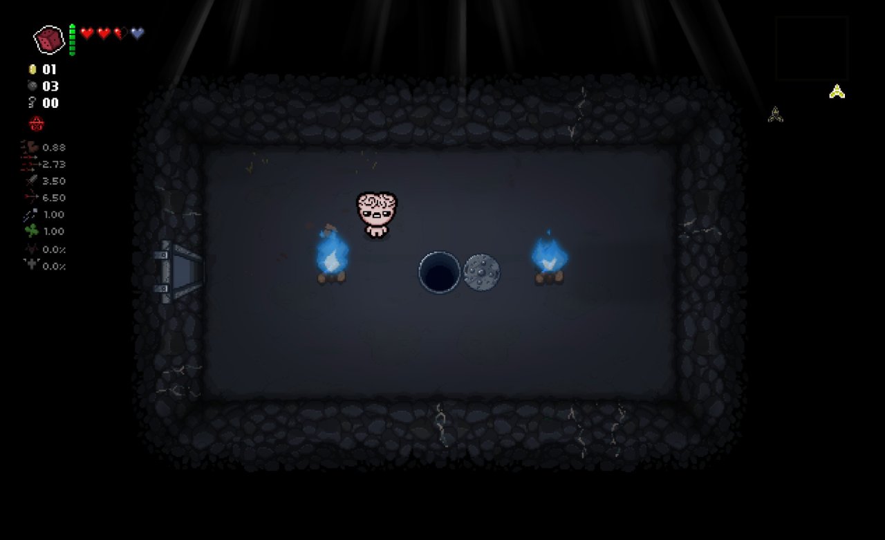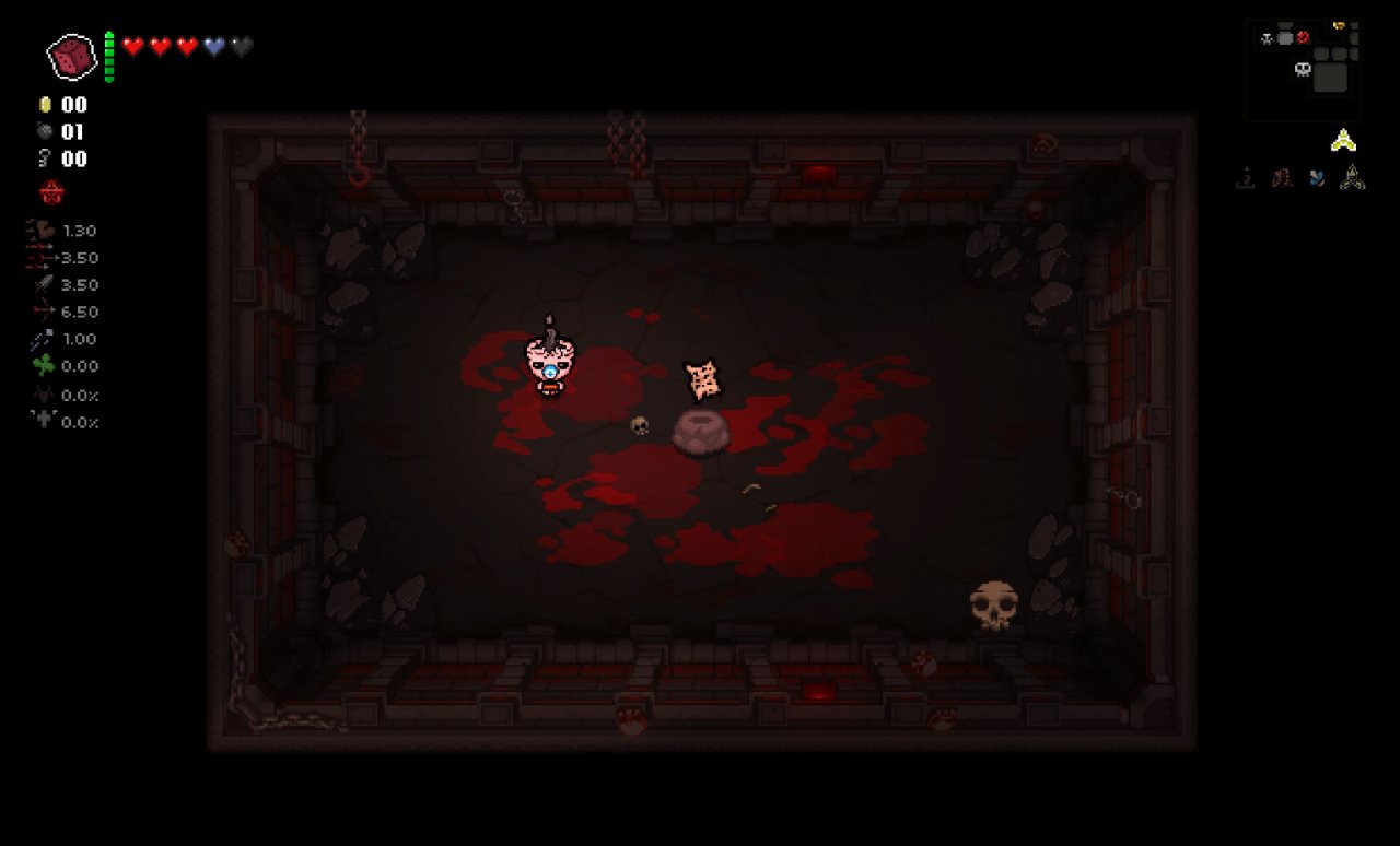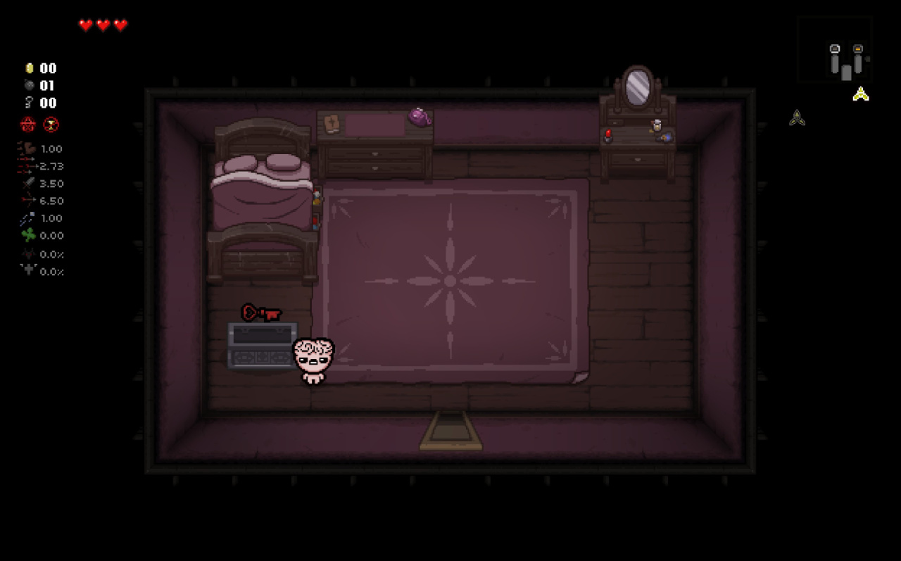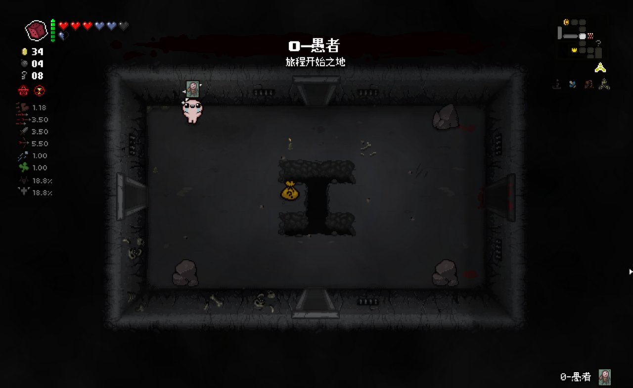趣談:如果玩家在有傳送能力的情況下,在打敗紅色肉門後的強化媽心之後傳送出BOSS房,會發現地圖外一片死寂,所有東西都會消失(包括寶箱房和商店)