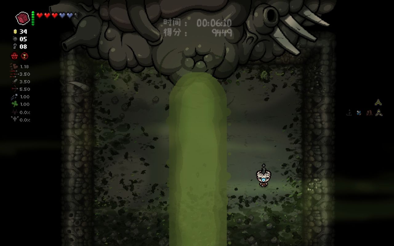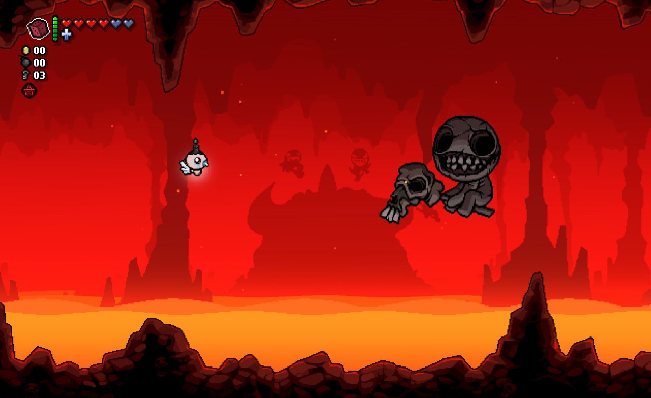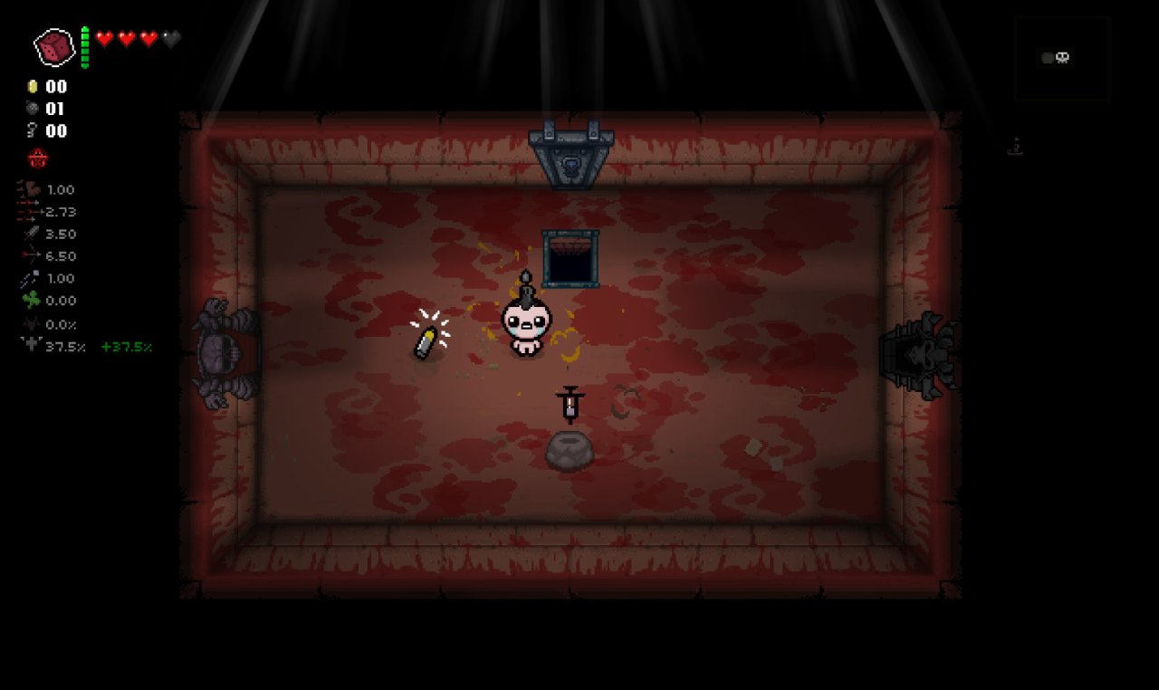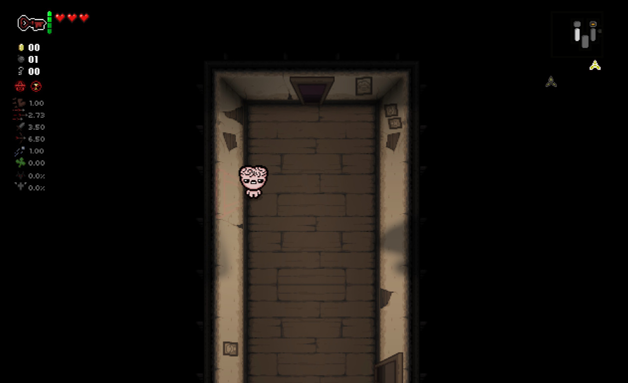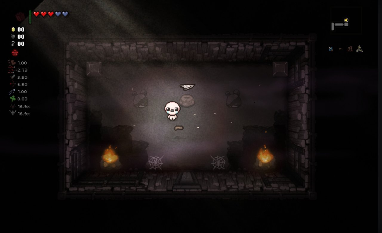 趣談:如果玩家在有傳送能力的情況下,在打敗紅色肉門後的強化媽心之後傳送出BOSS房,會發現地圖外一片死寂,所有東西都會消失(包括寶箱房和商店)