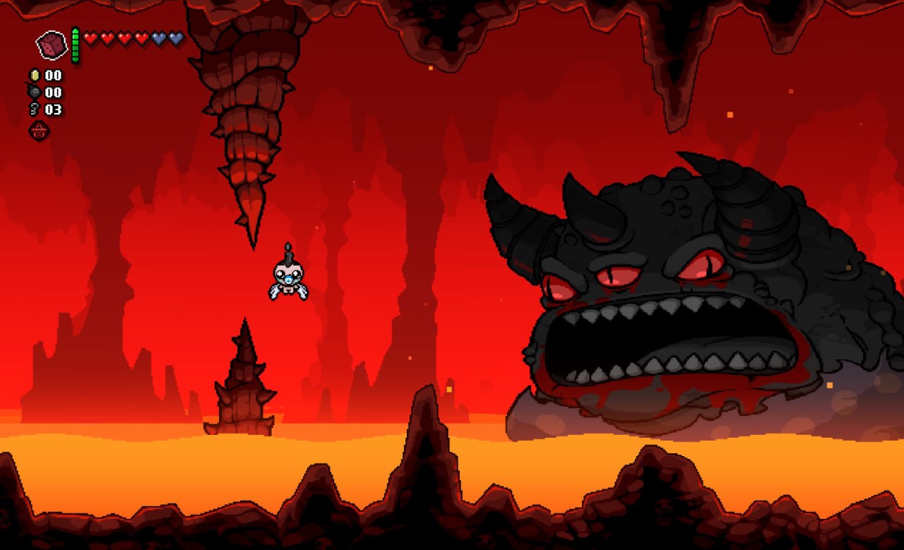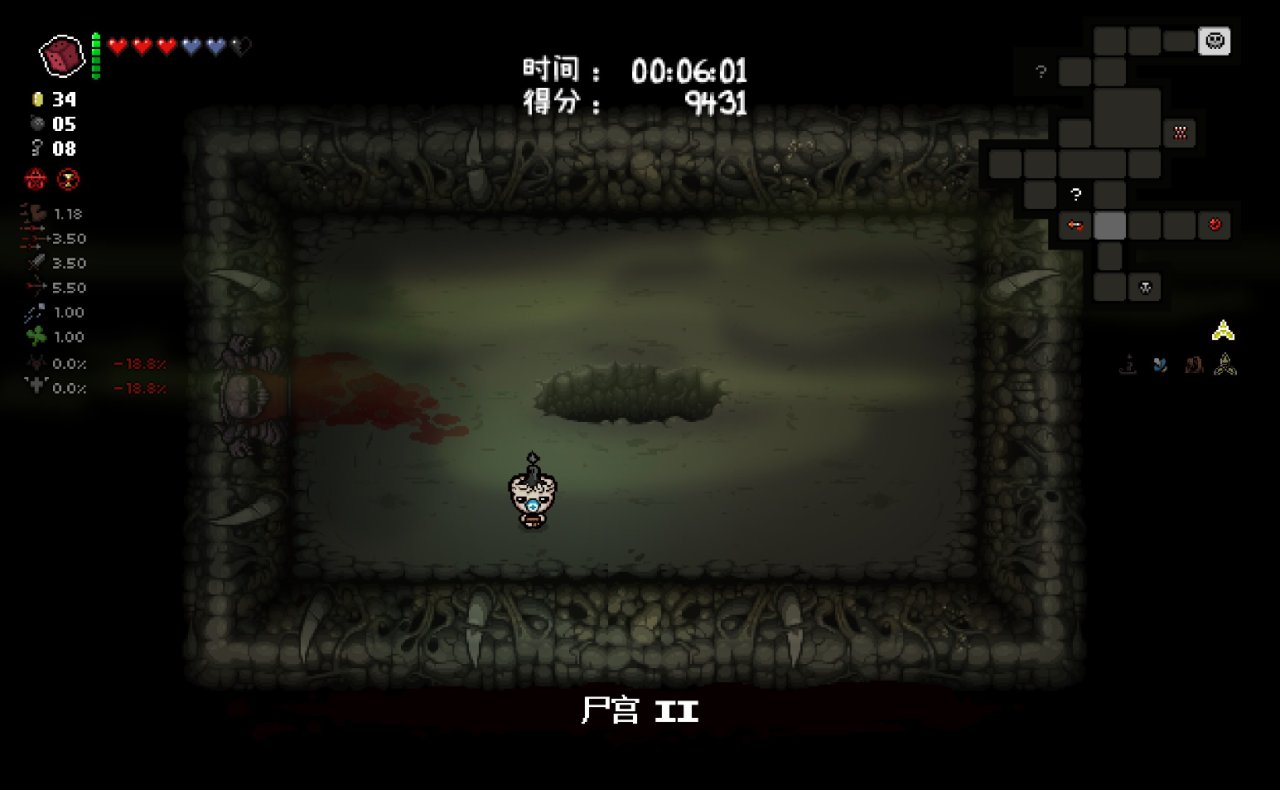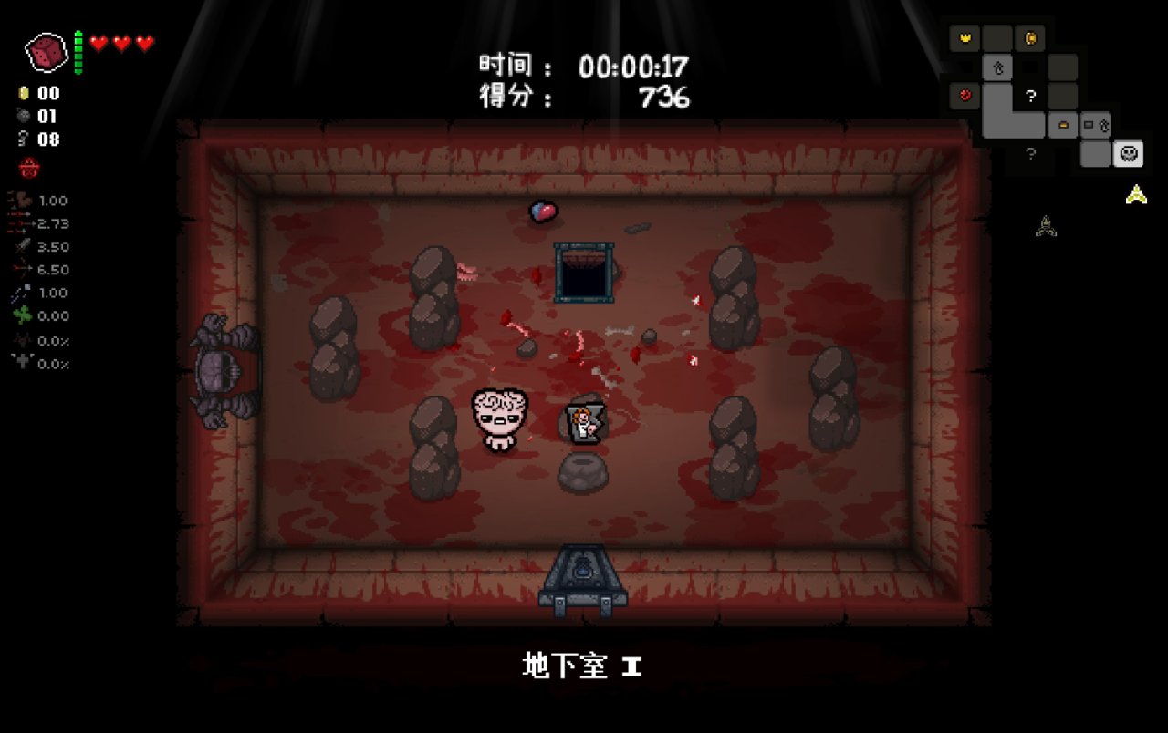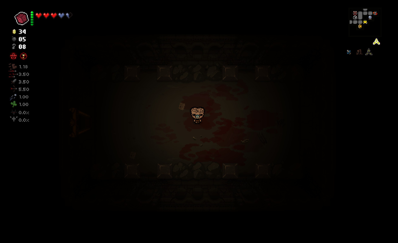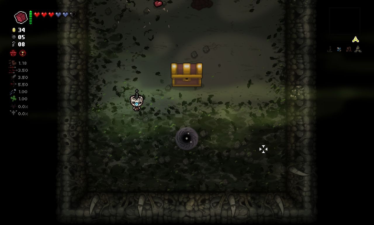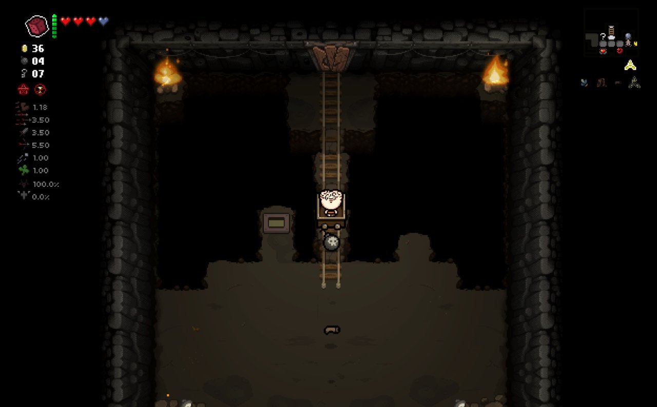 趣談:如果玩家在有傳送能力的情況下,在打敗紅色肉門後的強化媽心之後傳送出BOSS房,會發現地圖外一片死寂,所有東西都會消失(包括寶箱房和商店)
