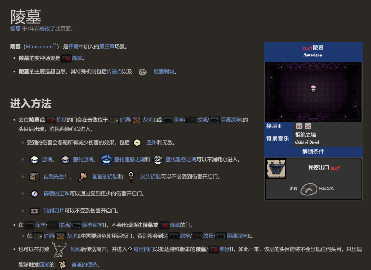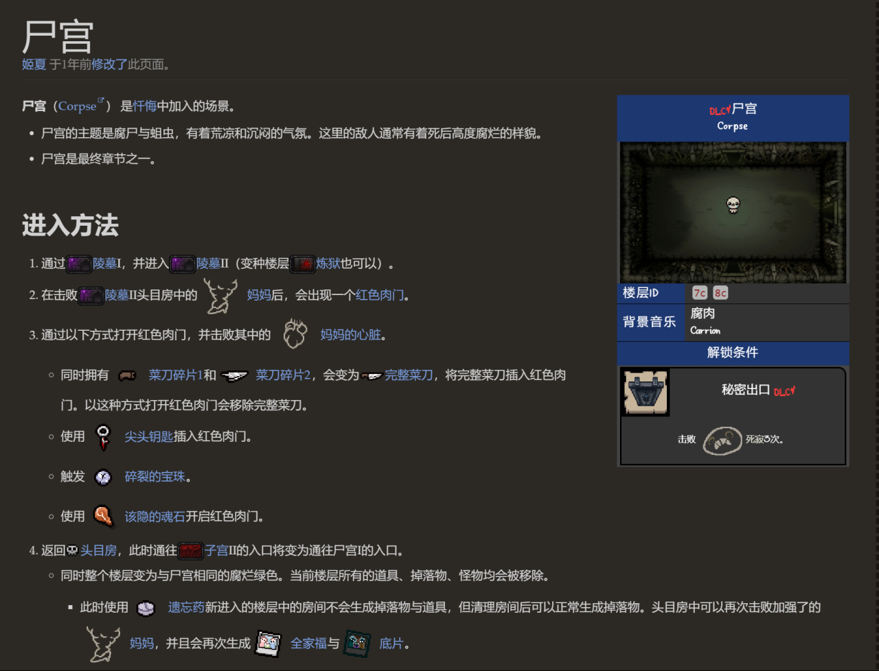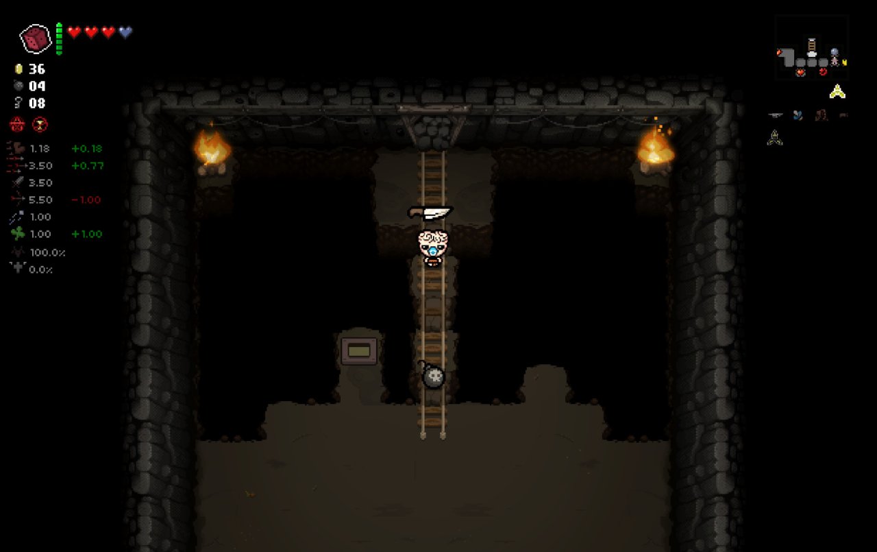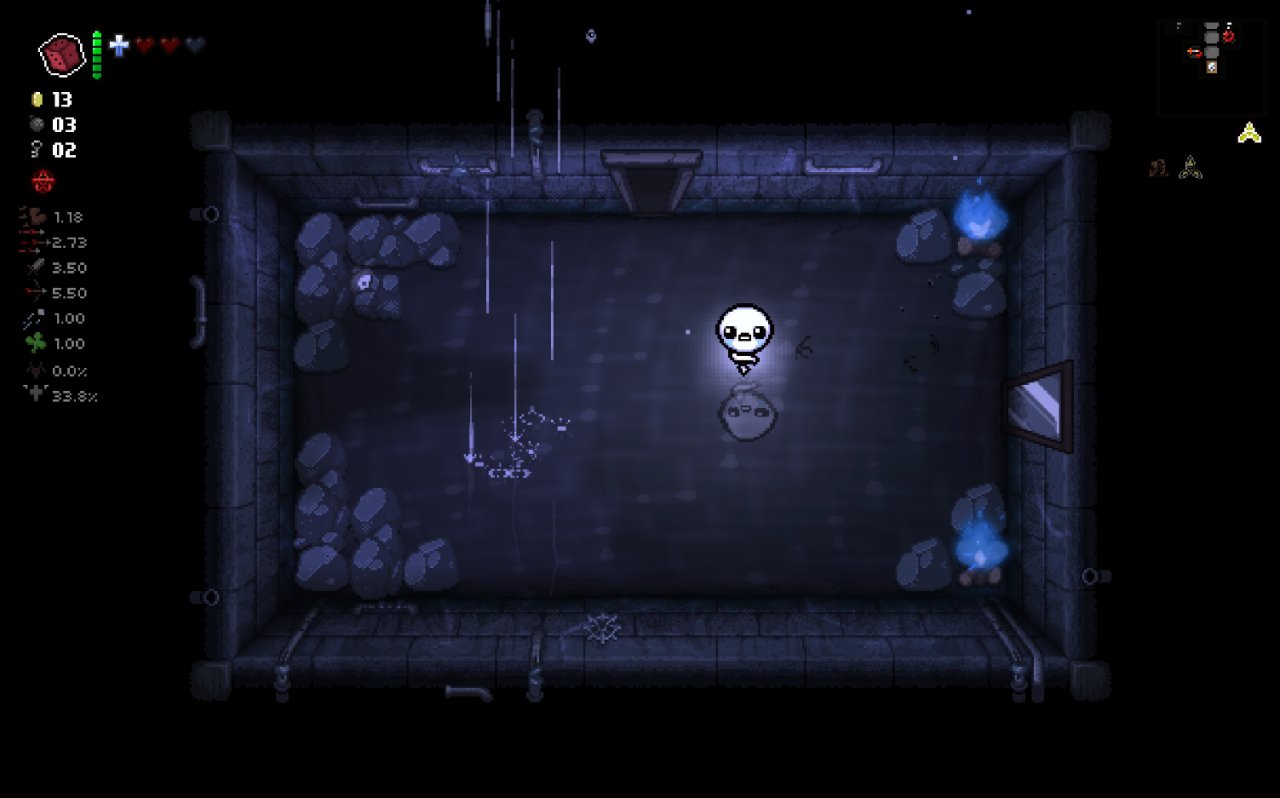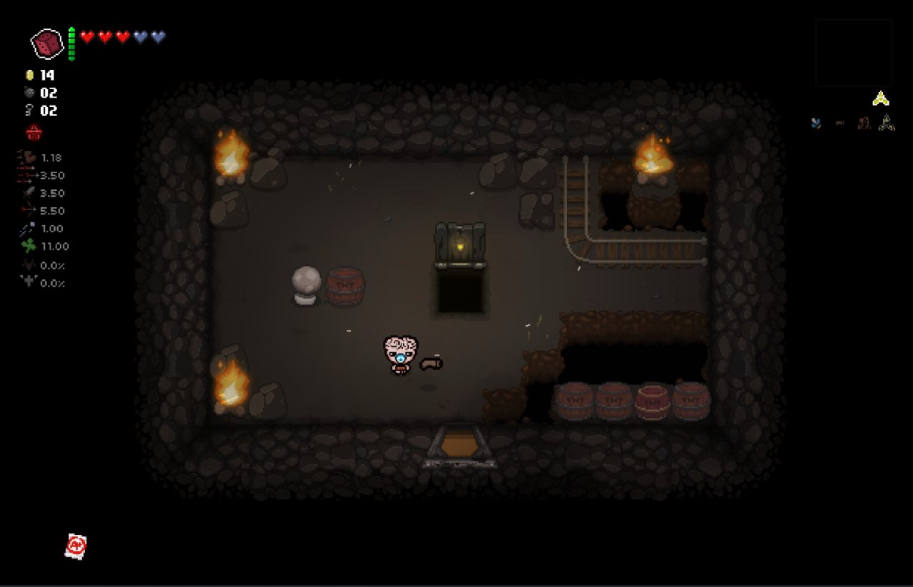 趣談:如果玩家在有傳送能力的情況下,在打敗紅色肉門後的強化媽心之後傳送出BOSS房,會發現地圖外一片死寂,所有東西都會消失(包括寶箱房和商店)