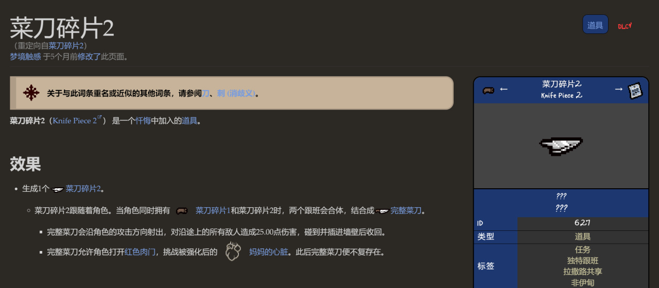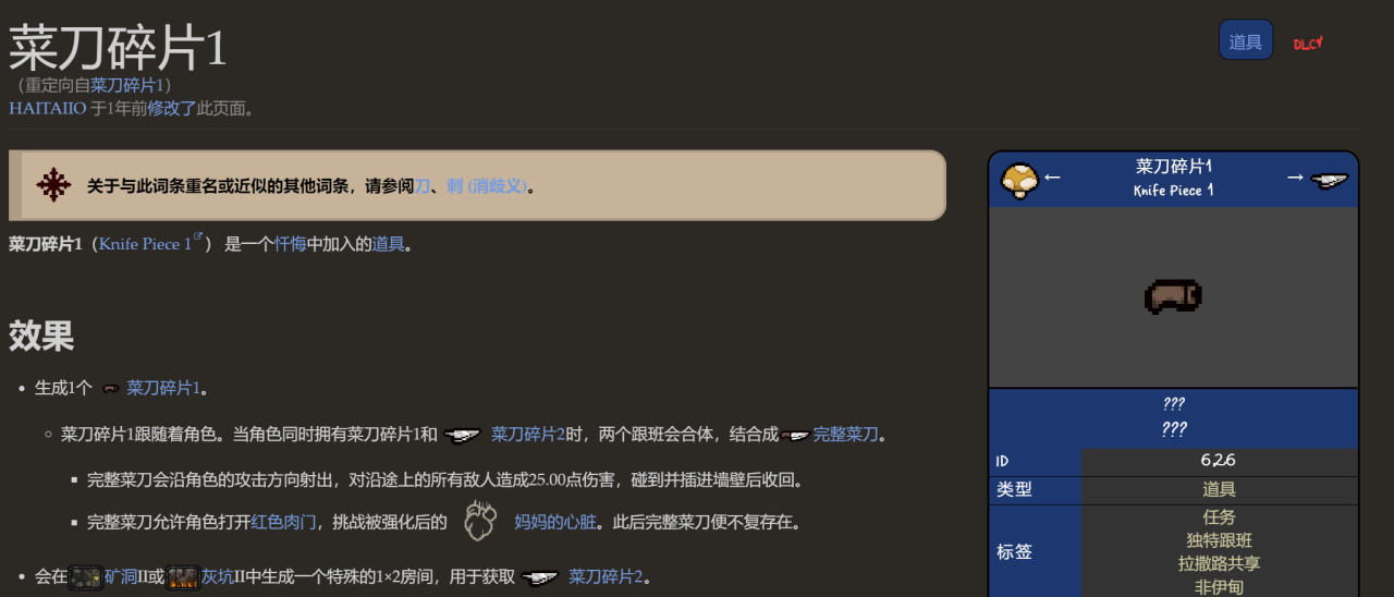 與超級撒旦的鑰匙類似,“完整菜刀”也需要通過比較隱晦的手段才能獲得,並且同樣需要菜刀碎片1與菜刀碎片2纔可以自動合成“完整菜刀”。