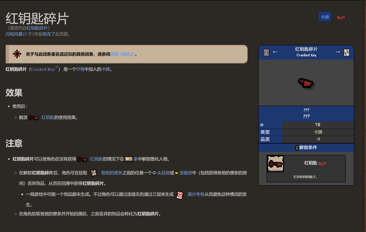 可以看到,紅鑰匙碎片一樣可以觸發紅鑰匙的效果