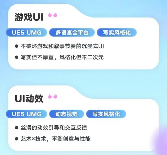 此外,游戏UI和UI特效岗位均对“写实风格化”做出了要求,其中游戏UI还特别强调“写实但不厚重,风格化但不二次元”。