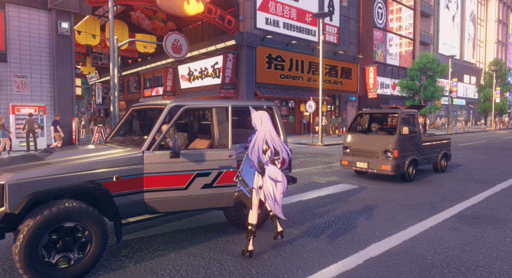 其中最直观的难点莫过于对都市中海量建筑和人群的刻画。你要刻画都市生活,那么不同的设施总得做出来吧?街道上人来人往、熙熙攘攘的氛围得营造出来吧?要做载具的话,城市里不能只有你一辆车吧?