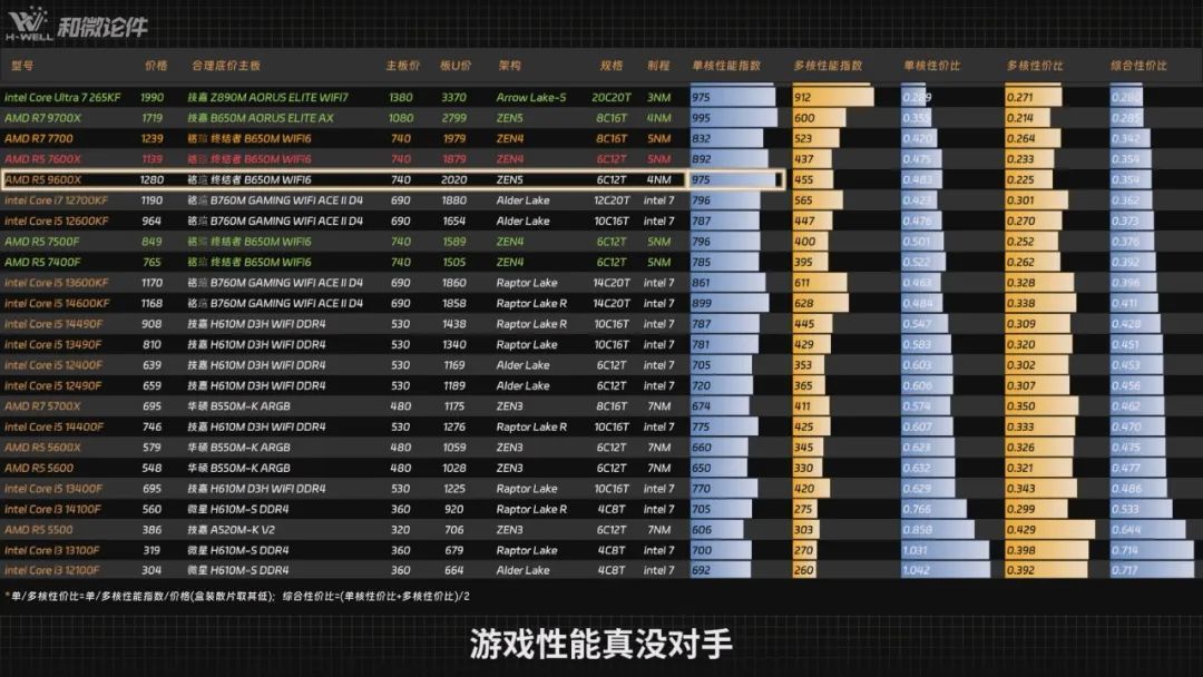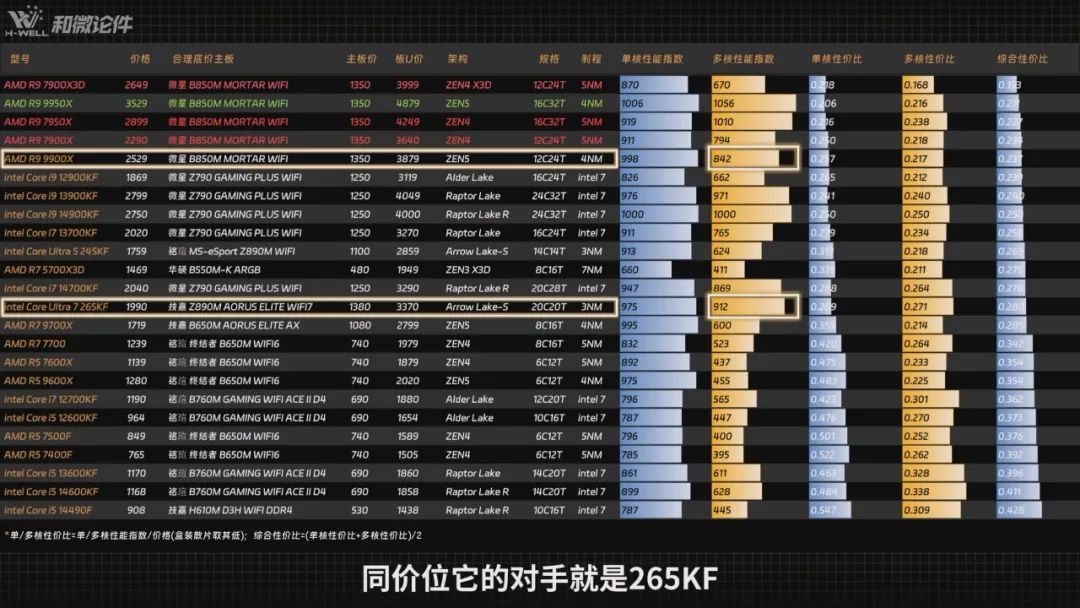 9900X,买他的估计基本都是生产力用户,那论生产力,同价位它的对手就是265KF,相比最近大降价的265KF,它的性价比就差的有点多了,从游戏性能的角度来说就更不推荐了,本质就是两颗9600X,游戏性能其实就比9600X略强一丁点。总体不推荐入手。