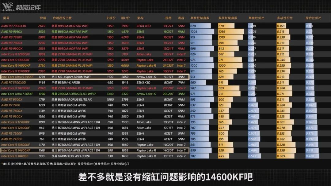245KF,这是14600KF的继任者,性能跟146比基本没有啥提升,差不多就是没有缩缸问题影响的14600KF吧,目前价格贵了大几百,就买个没有缩缸风险,太亏了,不建议碰!