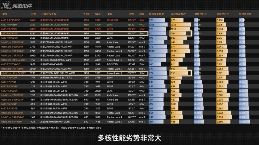 7900X,跟降到2000出头的265KF相比,多核性能劣势非常大,不推荐入手。