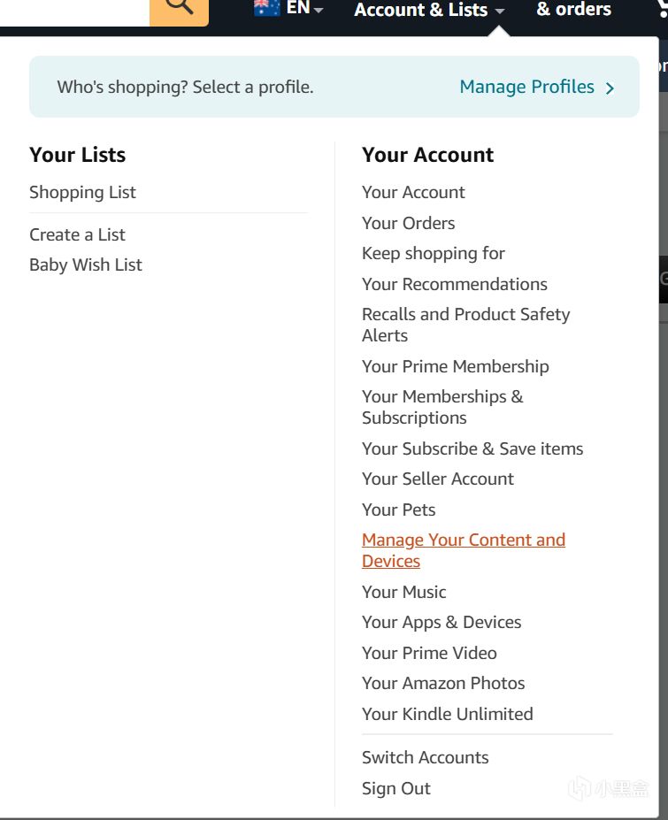 我们先打开亚马逊官网,进入管理设备与内容(Manage your content and device)