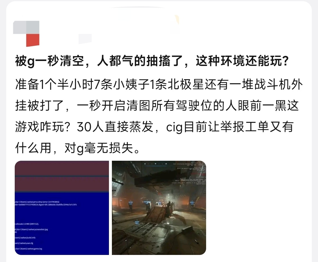 在开发商CIG低效且无力检测外挂现象的情况下,玩家之间已经被逼到自发抱团分享惨痛经历,全民抓挂哥向CIG举报的离谱程度: