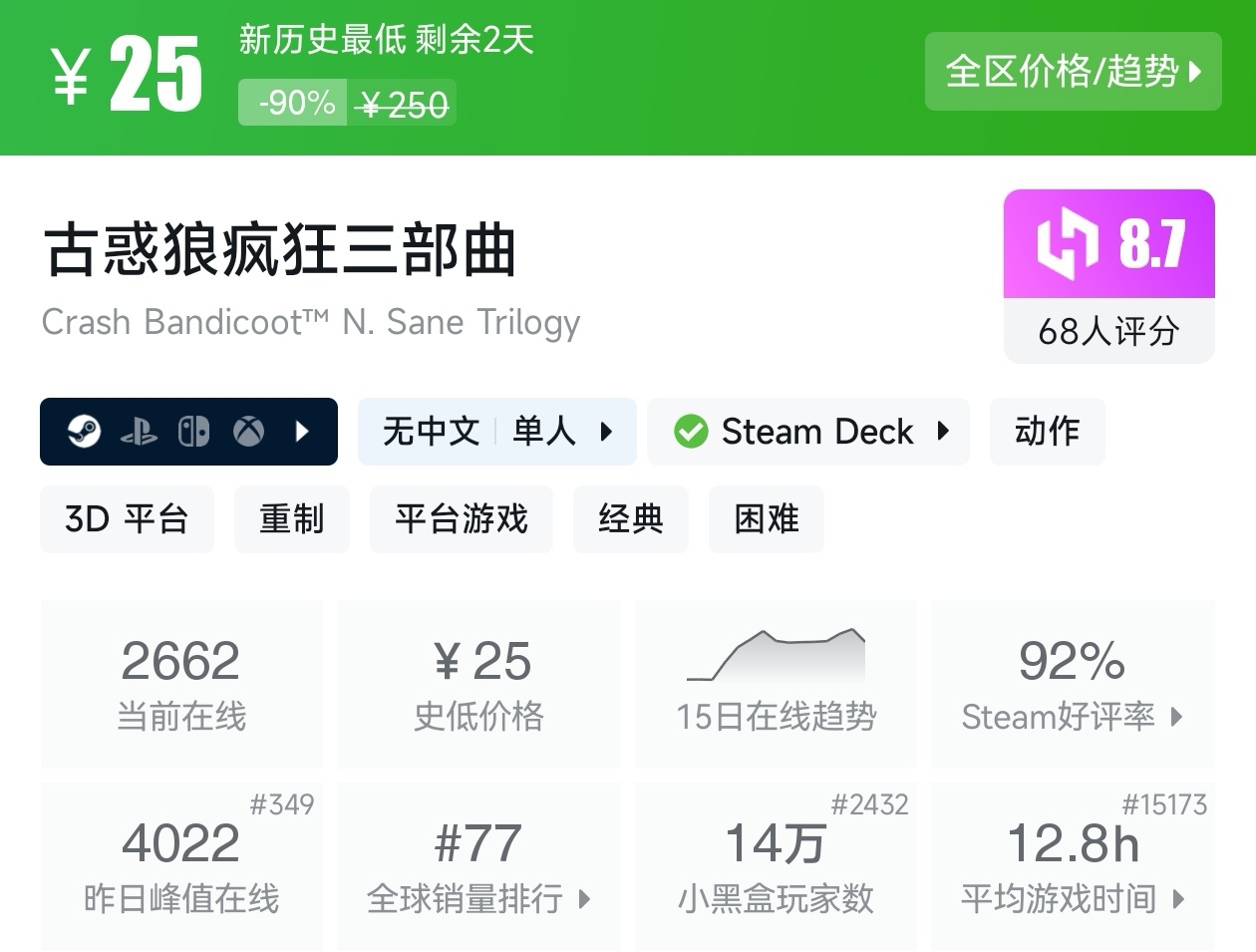 大家好,沒錯,又是我,你們的老朋友亦然,轉眼夏促就快結束了,而這期帖子如你所見,是一期關於既是新史低,又是一折的遊戲,那麼就要抓緊時間,因爲這些遊戲入了不虧,可能下次遊戲再打折就不是一折了,包括我也入了其中很多遊戲,所以這期帖子很權威,我將爲各位進行一個彙總,希望我的彙總,能夠幫助各位盒友挑選心儀的遊戲。