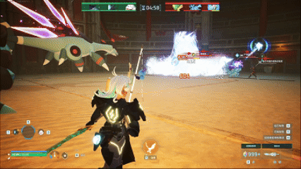竞技场现已上线,包含PVE单人模式和PVP对决模式。战斗不是回合制而是即时制,两边帕鲁攻击特效对轰。