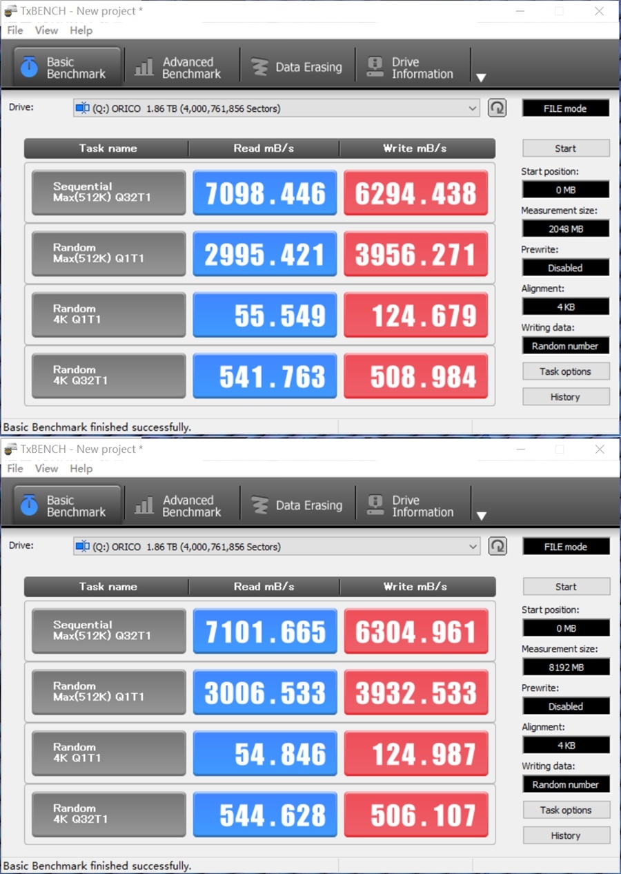 2GB,读取速度7098+ MB/s ,写入速度6294+ MB/s。