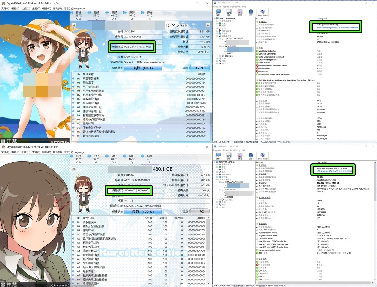 对拷测试使用了两种传输模式的固态硬盘,一个是SATA移动固态硬盘6GB/s,一个是PCIe 3x4固态硬盘工作在PCIe 3.0x1模式下。