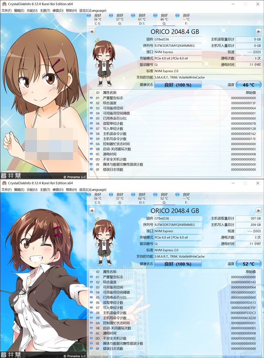 待机温度46度,不间断多次不同文件容量不同软件读写测试负载温度仅为52度,并且没有安装散热马甲,不得不说这样的温度美滋滋。