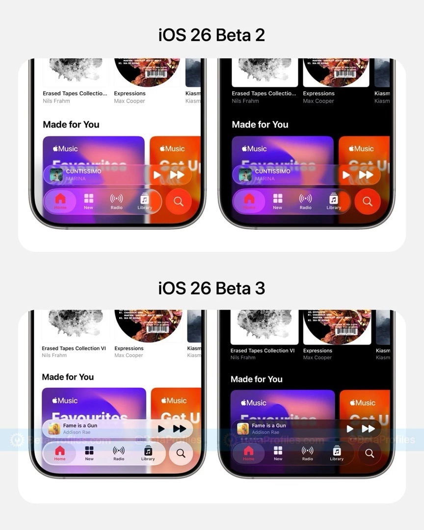 iOS 26 Beta 3 调整了 Liquid Glass 的设计,从原有的液态玻璃现在看起来有点像磨砂玻璃了。
