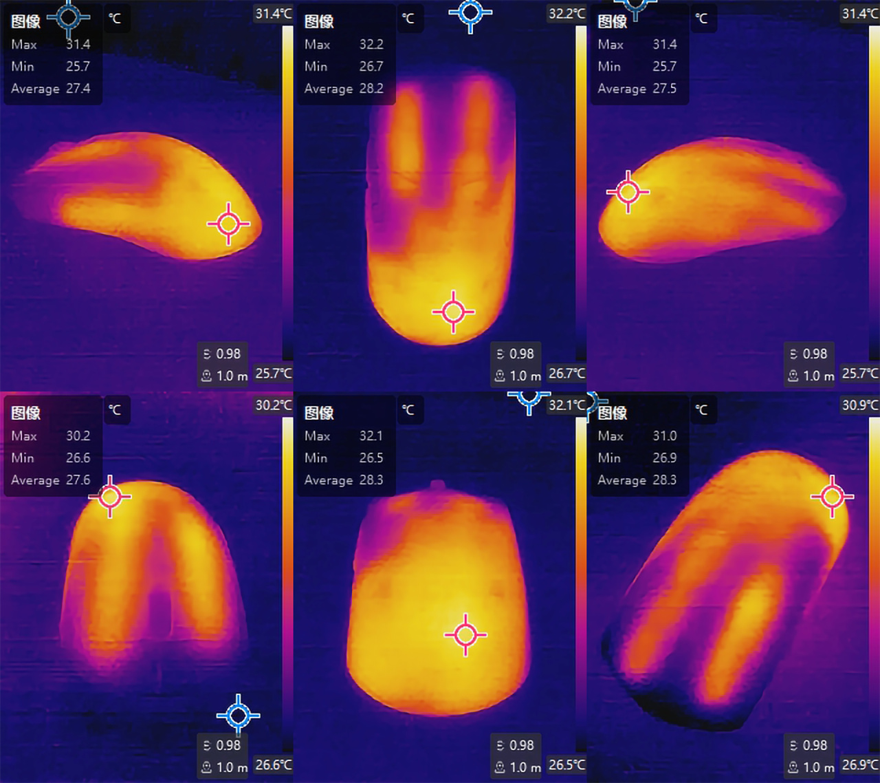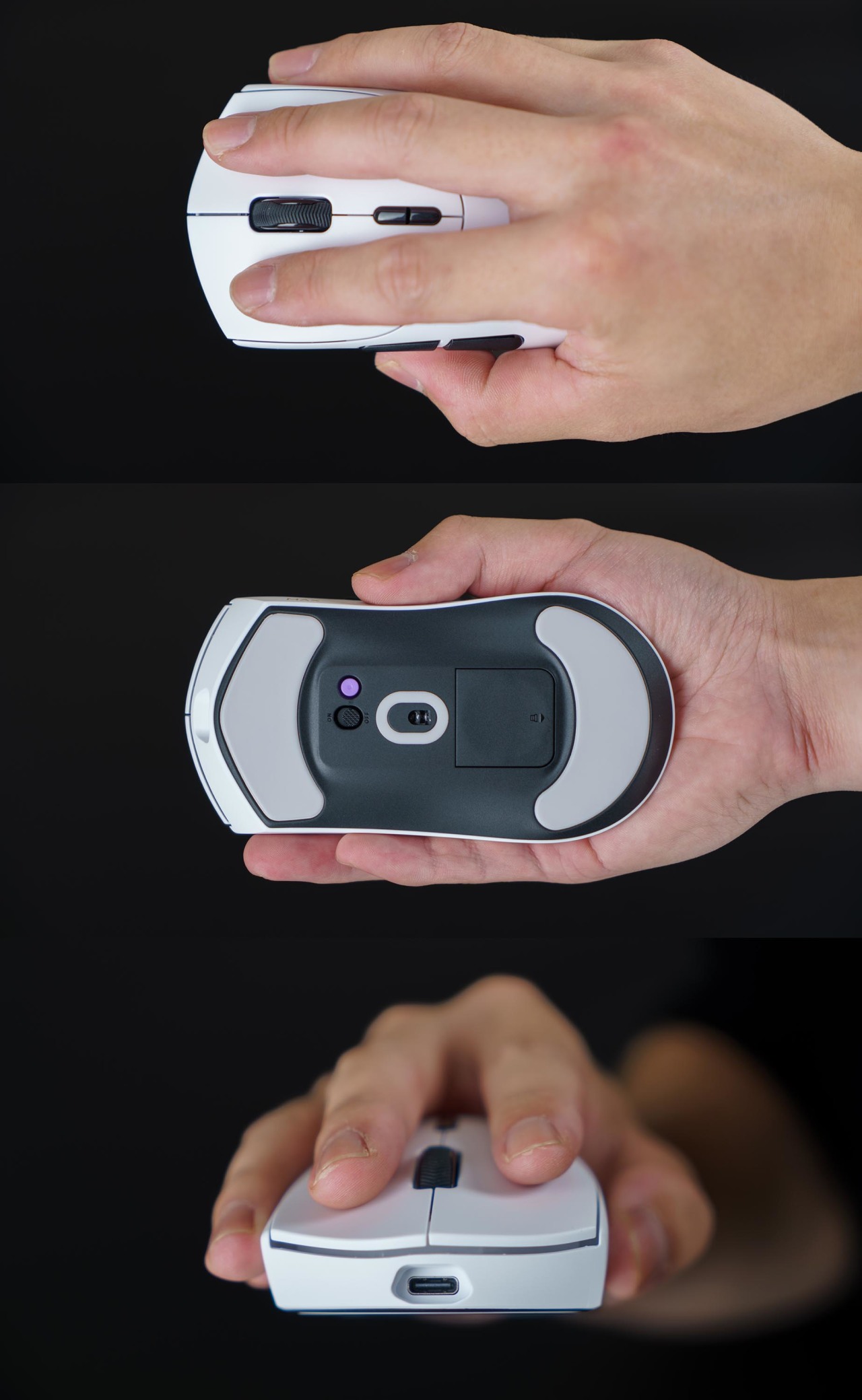 ▼人體工學型對稱設計、高度適中平滑過渡的大溜背掌託、兩側特調的曲線弧度,這些特徵光外觀看着就很舒服,實際上手體驗感也是十足;我用熱成像儀給你拍一下在我手型下趴握後的包裹情況,怎麼樣?手掌每一寸皮膚基本上都捱上了,做到了全包裹,萬金油模具真的非常適合大手握持,每個按鍵都可以在手基本不改變姿態的前提下輕鬆按到