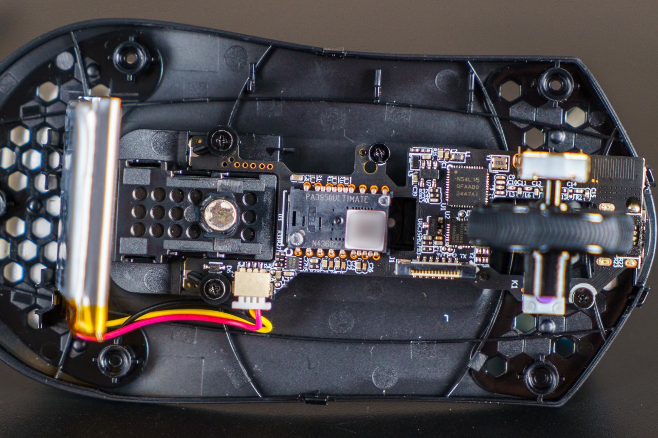 ▼最後壓軸的就是原相定製PA3950 Ultimate光學引擎了,右側還可以看到這款VT7系列還搭載了全行業首批的NORDIC 54系列芯片,集成高效 MCU,相比上一代NORDIC 52系列芯片,主頻和無線數據傳輸帶寬提高了2倍,搭配最新一代的V+WIRELESS 2.0 智能算法,降低功耗的同時還能保持優秀的性能,帶來更強的抗干擾能力和更低的延遲,直接把參數拉滿也沒有續航焦慮咯!頂尖!如果拆過以前的鼠標或前幾代的鼠標,你們會發現這次VT二代的PCB面積減小了很多,不犧牲性能的前提下能夠大大減輕鼠標的重量,而且它的結構造型通用性非常強,你甚至可以實現把它的PCB板移植到你所喜歡的其他型號鼠標外殼裏,就問你牛不牛,這纔是極客喜歡的產品