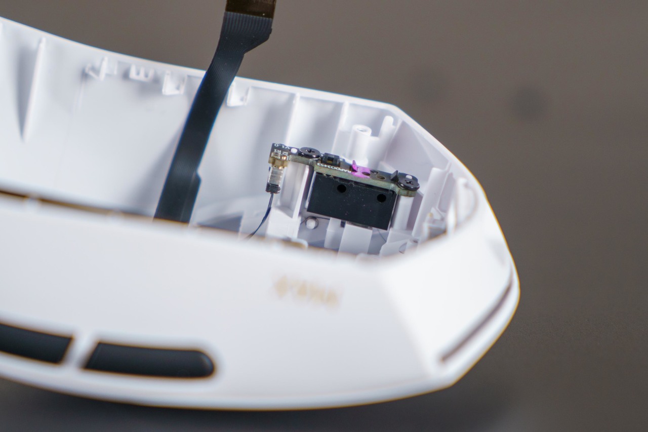 ▼這一代的鼠標還在按鍵前端新增了保護限位,如果不慎掉落,特定角度的磕碰都不會輕易導致按鍵被向上掰起,同時這個限位結構和滾輪橫杆與殼體可能產生接觸的地方也貼了海綿墊,減少塑料磕碰產生的噪音,雷柏簡直是細節狂魔啊