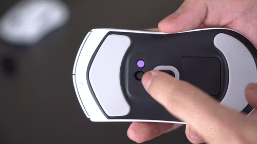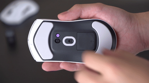 ▼把微型nano 8K接收器插在電腦上或用標配的轉換器連接電腦,這時候接收器指示燈就會閃爍,打開鼠標開關後會自動連上接收器,指示燈就會變成常亮,該指示燈還會根據鼠標電量剩餘情況,顯示對應的不同顏色來提醒,貼心設計