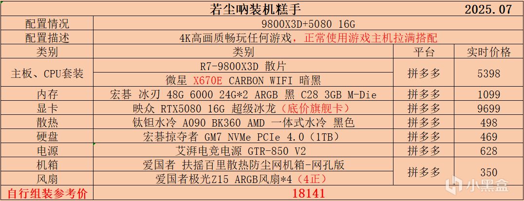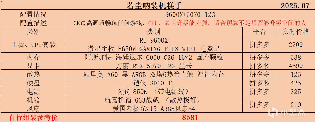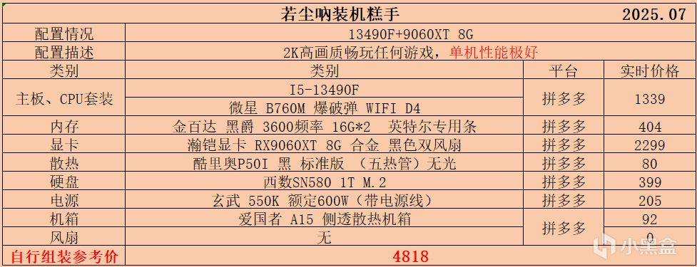 OK,七月配置推薦就到這裏結束了,還是一樣,嫌棄自己組裝麻煩有需要整機的盒友記得主頁簽名找我喔!