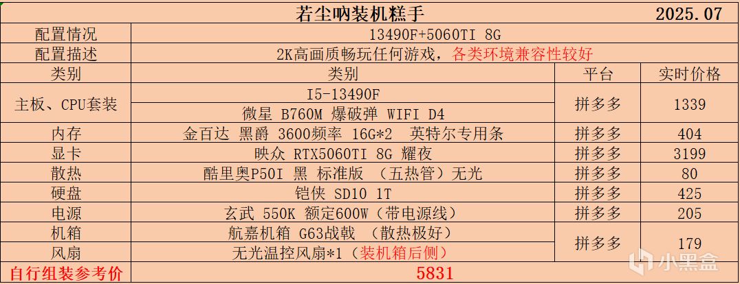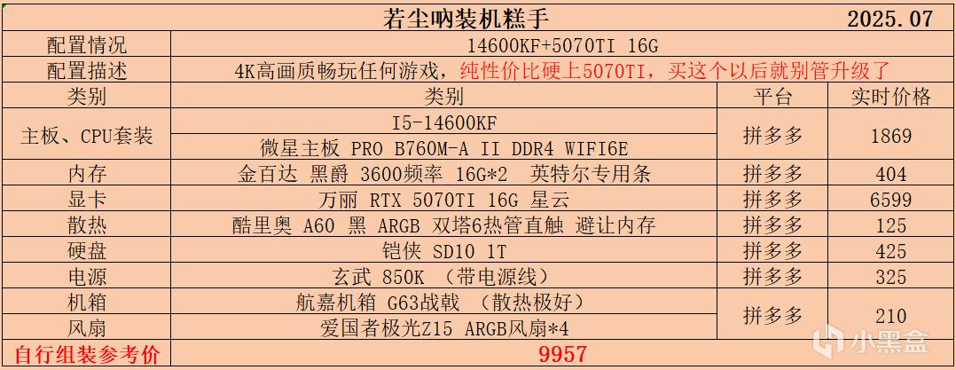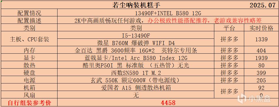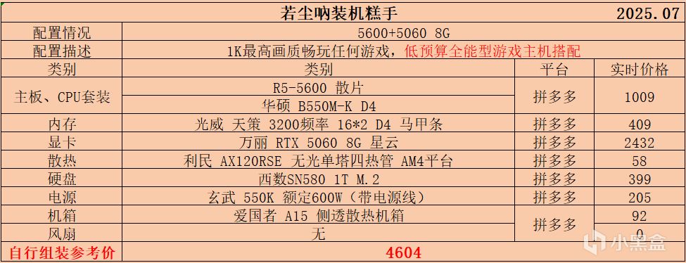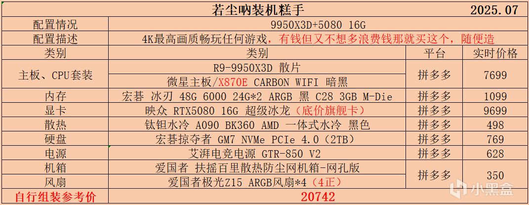 最近有裝機需求的貌似也不是很多,七月就簡單更新一下價格吧,讓你們能瞭解目前的市場行情,搭配的話,本次推薦仍然從千元的辦公主機到5090頂配推薦都有,盒友可按需查看,部分新出的硬件也都會更新在配置單內。