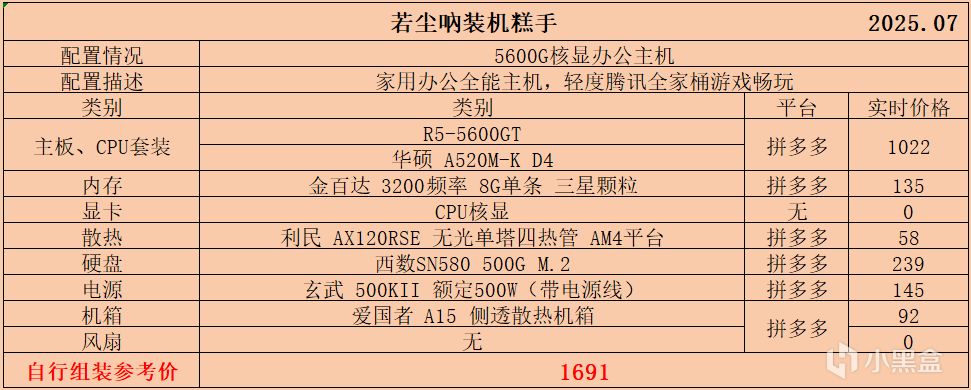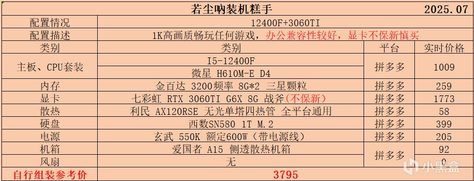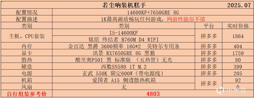 其他的,主板、散熱、機箱、風扇等仍舊價格穩定,無需在意。