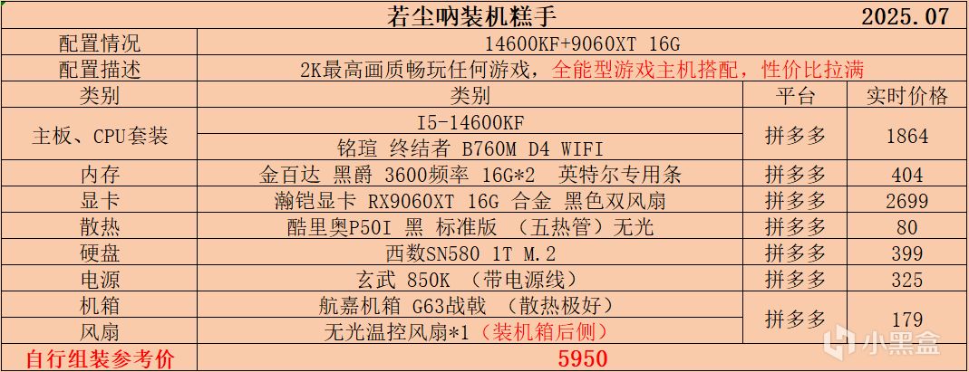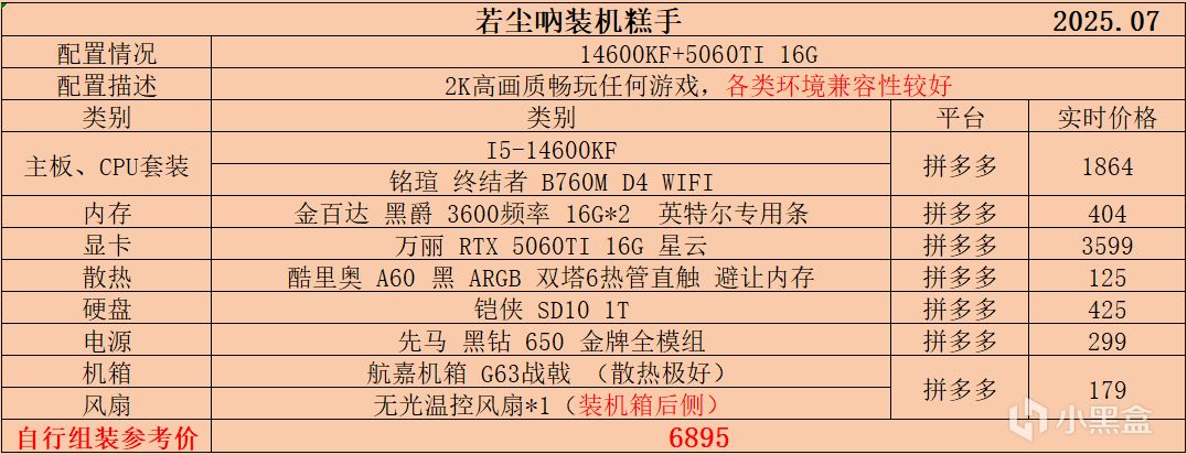 六、6000-7000預算,這個預算仍然是AMD顯卡的主場,N卡的話5060TI主推16G版本,CPU這邊英特爾14600KF仍舊是性價比首選,本次給到四個搭配,盒友按需裝機: