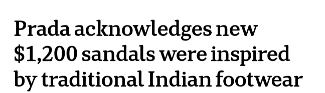 来自柯哈普里凉鞋生产地的匠人 Prabha Satpute 在媒体采访中直言:“这简直是小偷行为,他们偷了我们的设计。”多家印度媒体和社交平台上,已有上千条投诉声浪,指责 Prada 未在产品信息或秀场说明中提及其设计灵感来源。