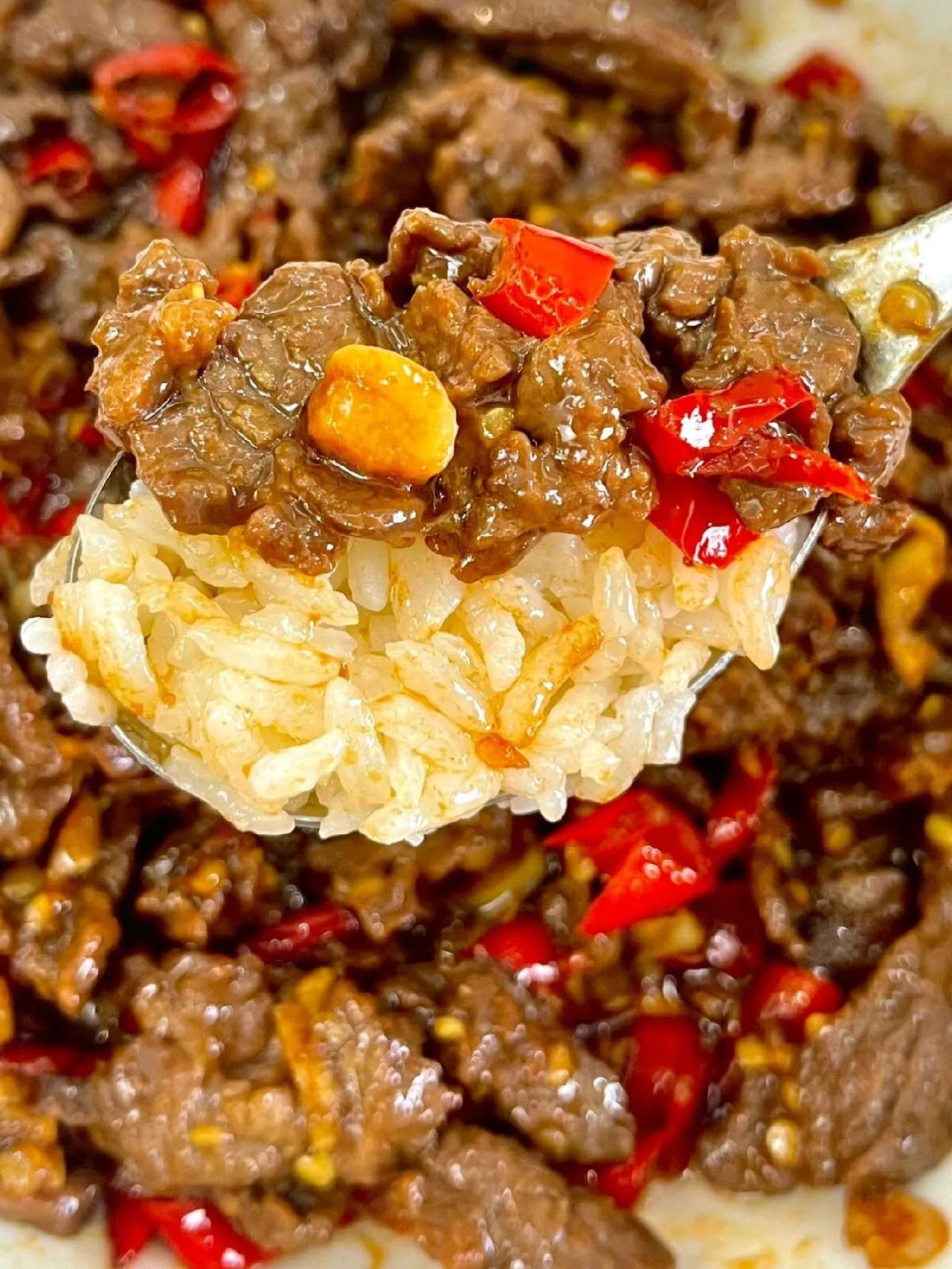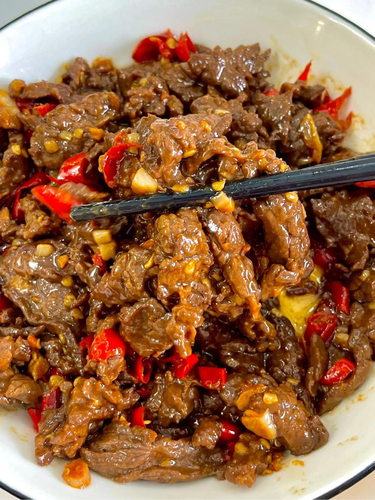 牛肉好香好辣超级好吃,辣度根据自己口味放辣椒的量就行啦,低卡低脂。