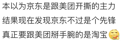 如今的局面,淘寶閃購和美團外賣,恐怕纔是真正的刺刀見紅,非得分出個高下才行。