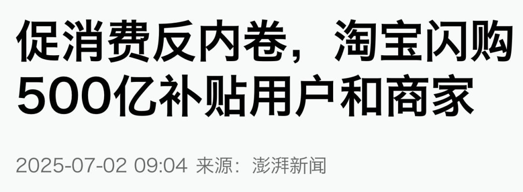 7 月 2 號的時候,淘寶閃購先喊出了 “ 促銷費反內卷 ” 的口號,說是今年要用 500 億補貼用戶和商家。