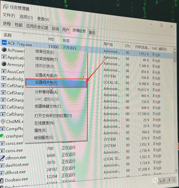 还没有结束,我们继续鼠标右键点击ACE -Tray.exe,找到设置相关性