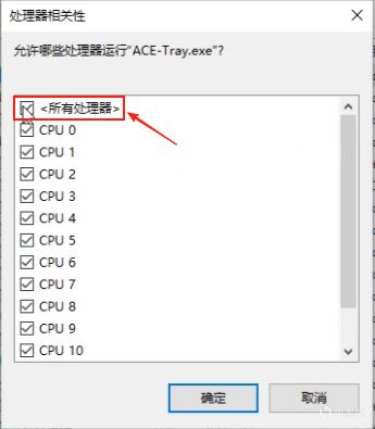 你会发现,ACE扫盘占用了你的所有的CPU,然后我们点击,所有处理器给它取消掉