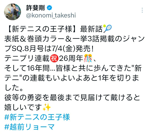 怎么说,虽然嘴上一直在吐槽,但说真要完结了居然还有点不舍。毕竟连载了这么多年,大家早就没把《新网球王子》当正经的热血运动漫来看了,都在想着许斐刚到底还能画出多少超现实的操作出来。